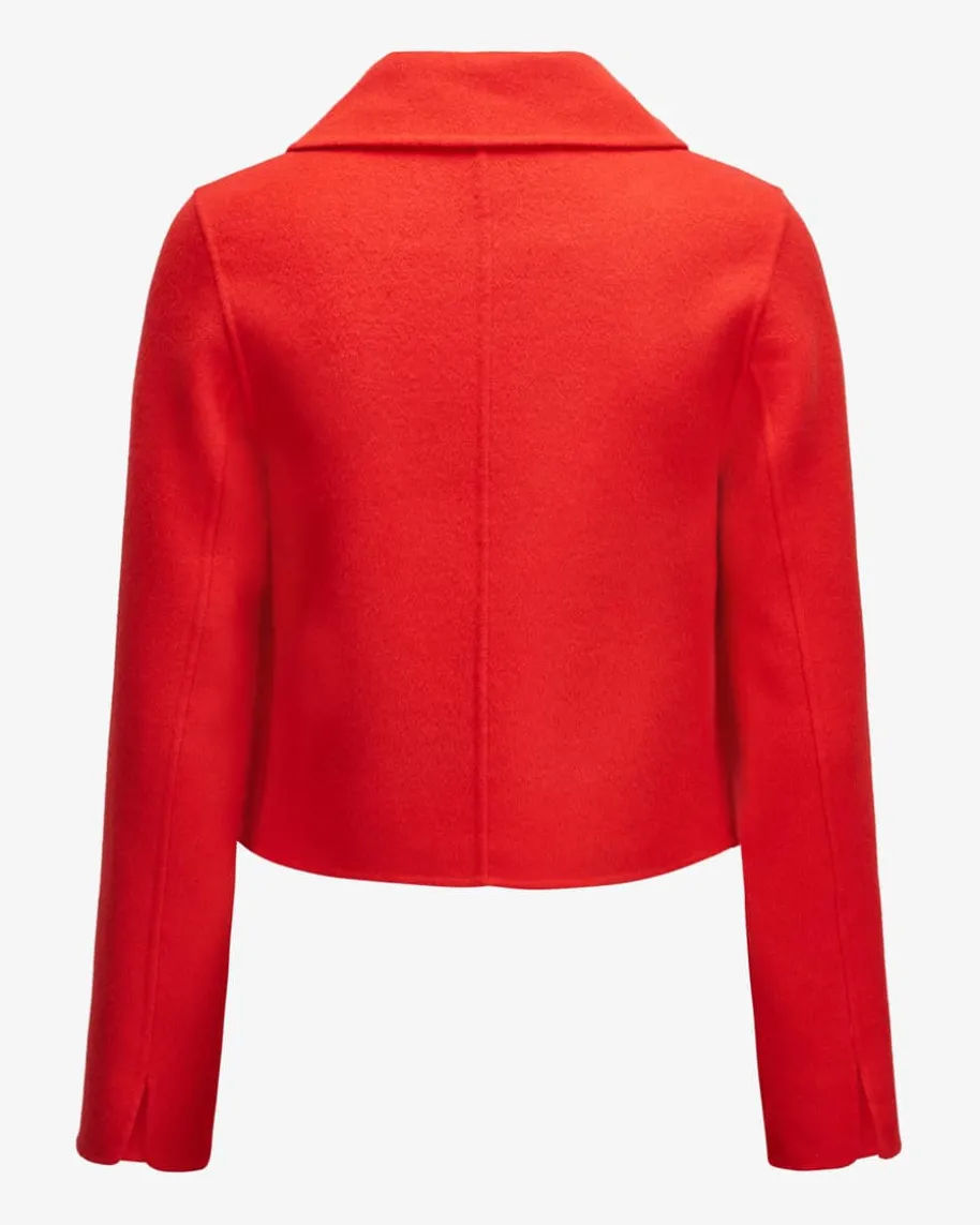 Jacke für Damen von Odeeh in Rot. Das Modell verwandelt sich durch die verkürzteSilhouette in hochwertiger Schurwoll-Cashmere-Qualität in einen modernenBegleiter für Ihre Garderobe. Zugleich runden der Bubikragen sowie der offeneVerschluss den stilsicheren Look gekonnt ab.