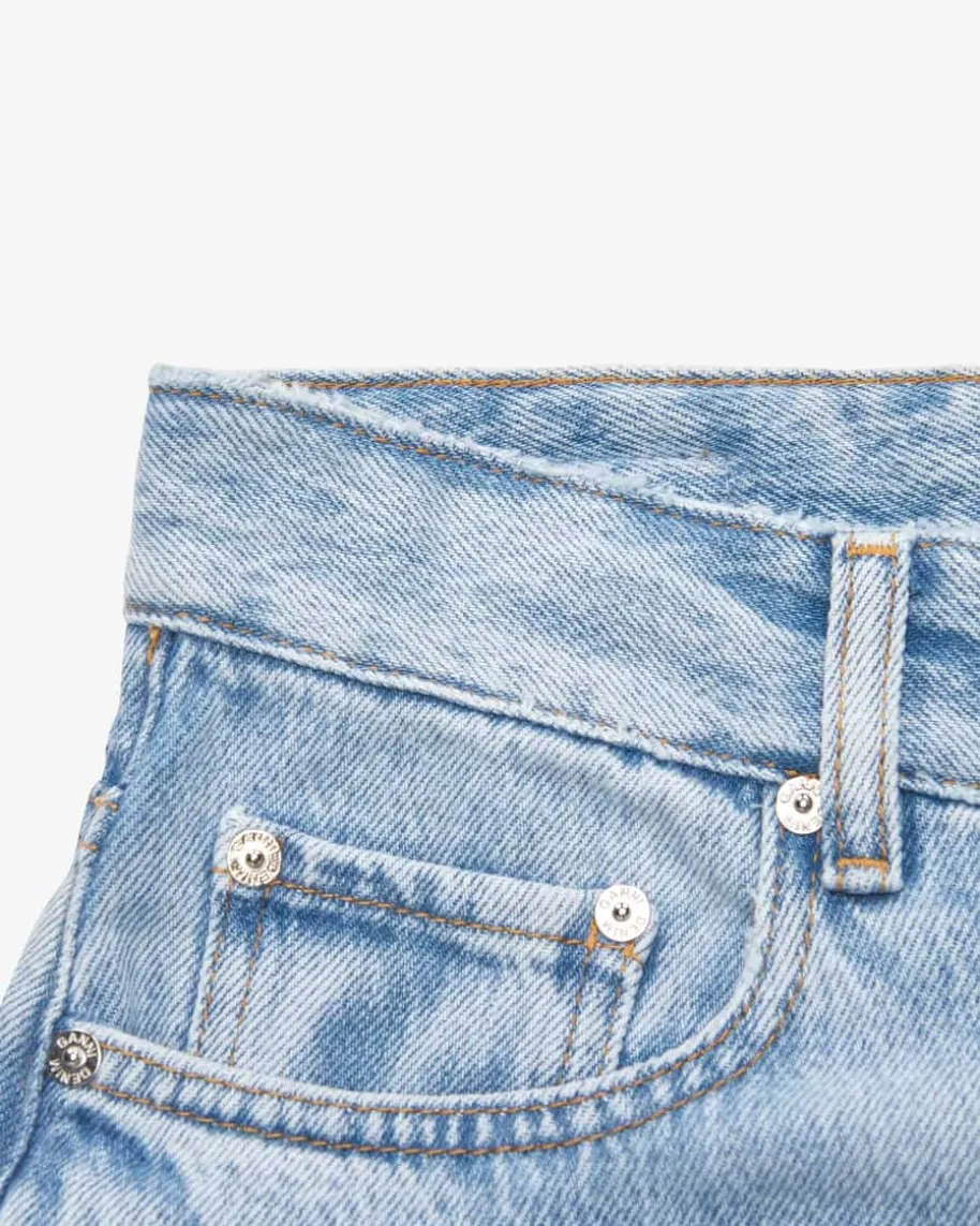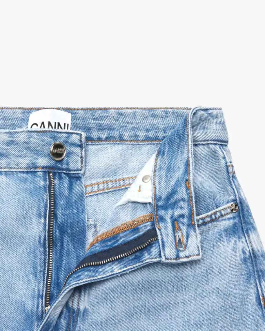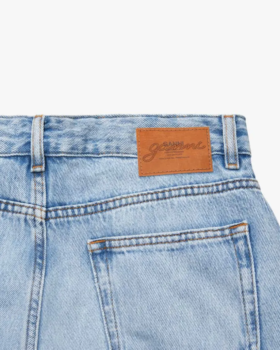 Jeans für Damen von Ganni in Hellblau. Das High Waist-Modell präsentiert sichmit weitem Bein in gerader Passform und erhält dank dem Mix aus Bio-Baumwolleund Lyocell eine softe Denim-Haptik. Die modische Acid-Waschung sowie Destroyed-Details am Bund verleihen dabei einen angesagten Vintage-Charakter.