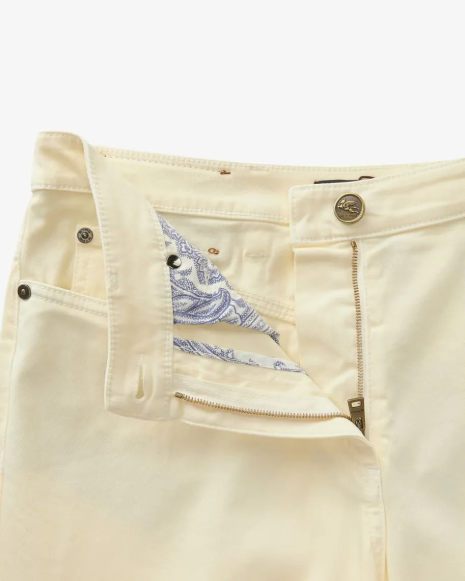 Jeans für Damen von Etro in Vanille. Dank des extralangen Schnitts mit weitem,leicht ausgestelltem Bein präsentiert sich das Modell als modischer Favorit,während die softe und leichte Baumwoll-Qualität für angenehme Tragemomentesorgt. Die tonale Logo-Stickerei sowie das Leder-Badge runden den Lookcharakteristisch ab.