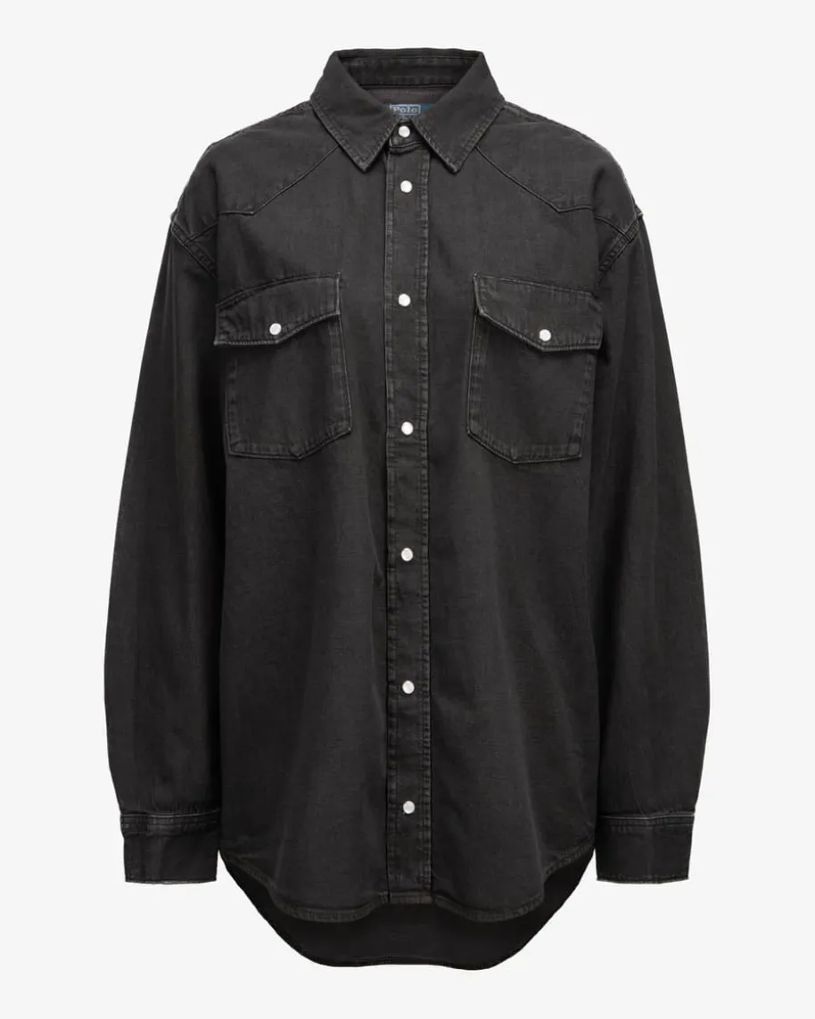 Jeansbluse für Damen von Polo Ralph Lauren in Schwarz. Das Modell in angenehmerBaumwoll-Qualität präsentiert sich als modischer Denim-Favorit, der durch dieOversize-Passform einen legeren Touch erhält. Die Details im Western-Stil rundendas Design gekonnt ab.