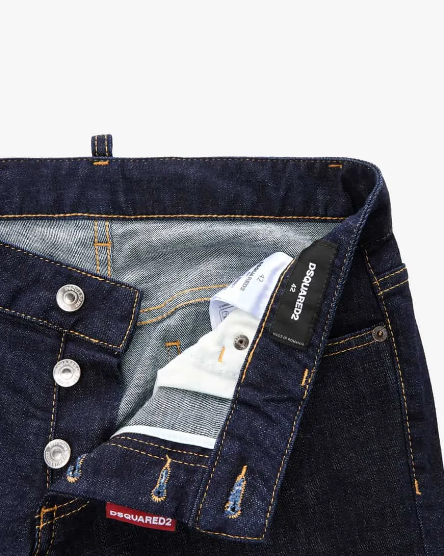 Jennifer Jeans für Damen von Dsquared2 in Dunkelblau. Das Modell begeistert mitklassischer Denim-Aufmachung, während Kontrastnähte den letzten Schliffverleihen. Die elastische Baumwolle sorgt für angenehme Tragemomente und rundetden zeitlosen Look perfekt ab.