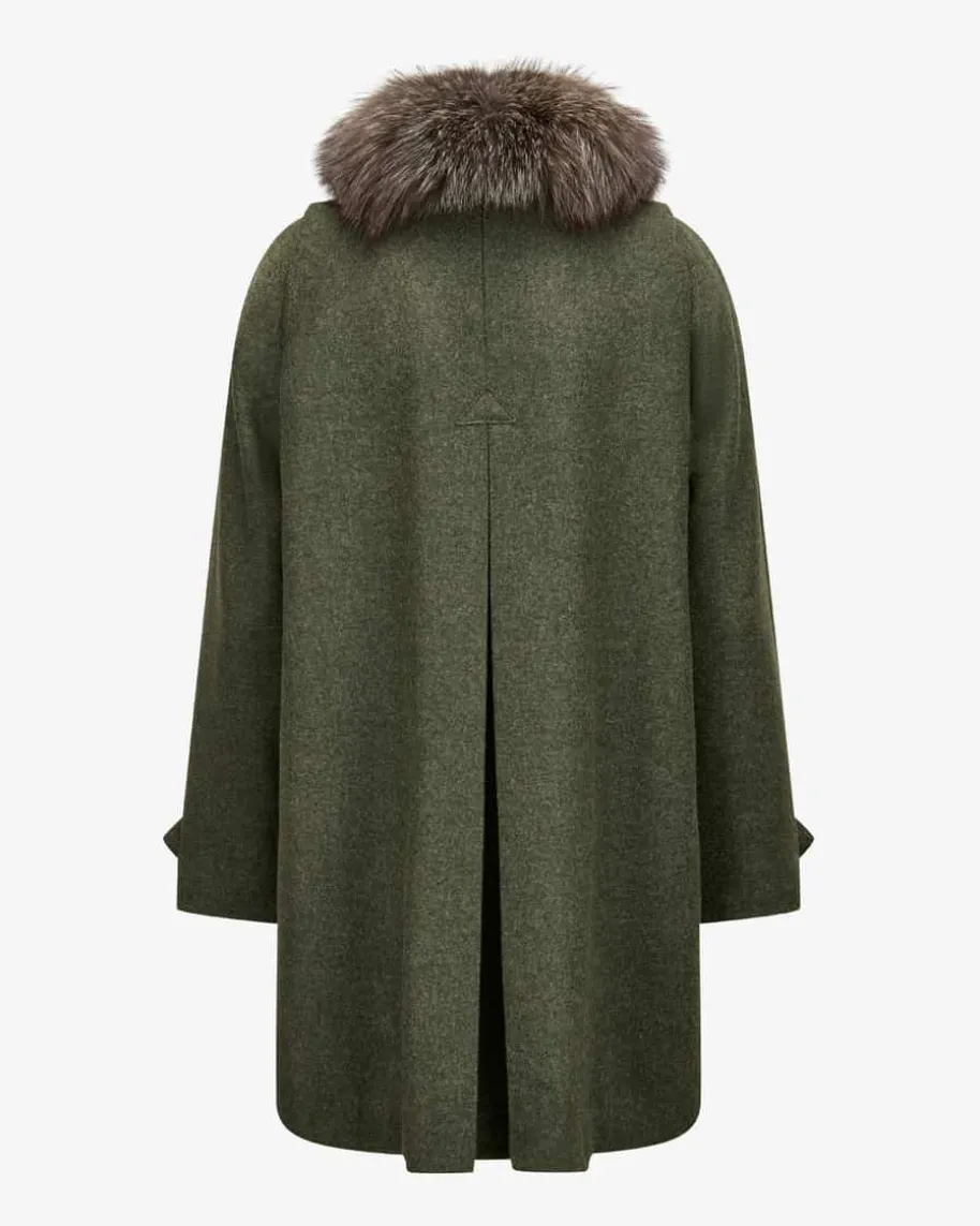 Johanna Trachten-Lodenmantel für Damen von Maximilian in Moosgrün. Das Modellbegeistert mit hochwertigem Loden mit weicher Haptik, der für angenehmenTragekomfort sorgt. Der kuschelige Fellkragen rundet den zweireihigenTrachtenbegleiter gekonnt ab.