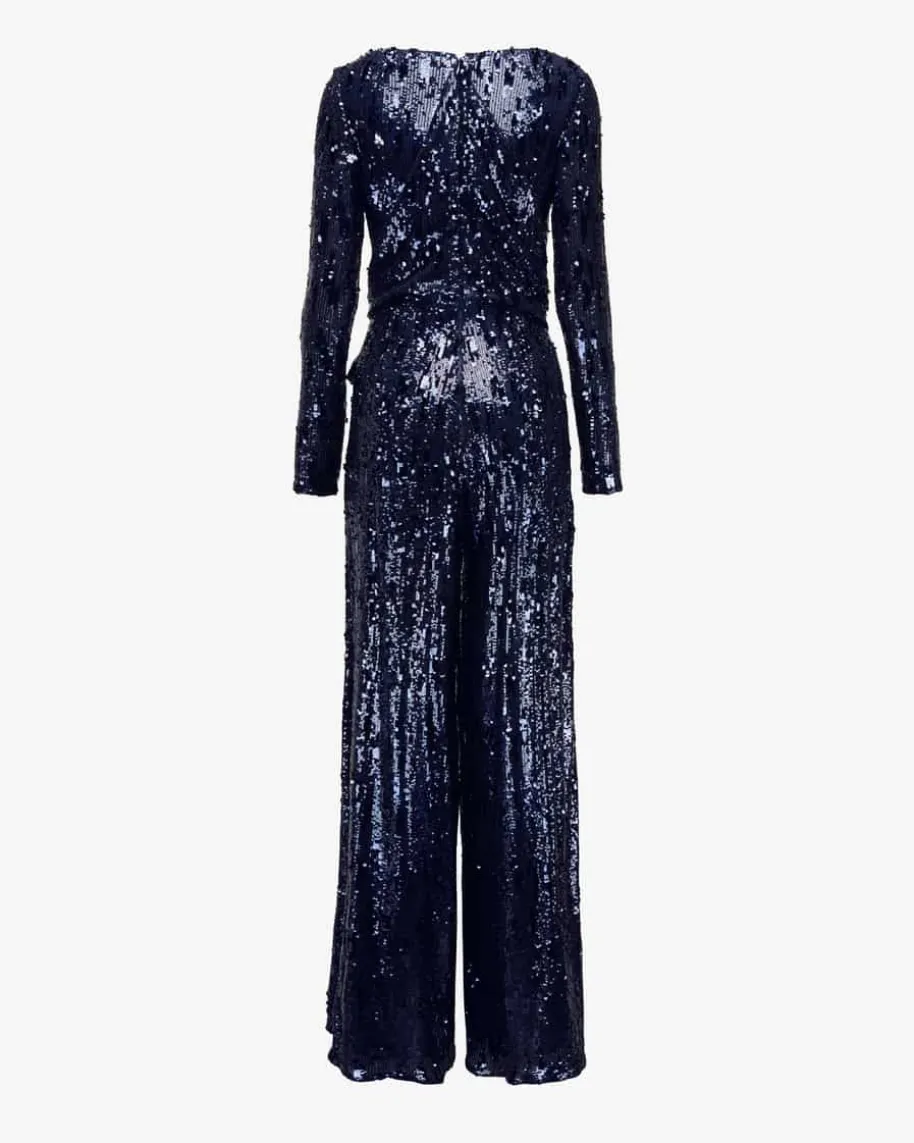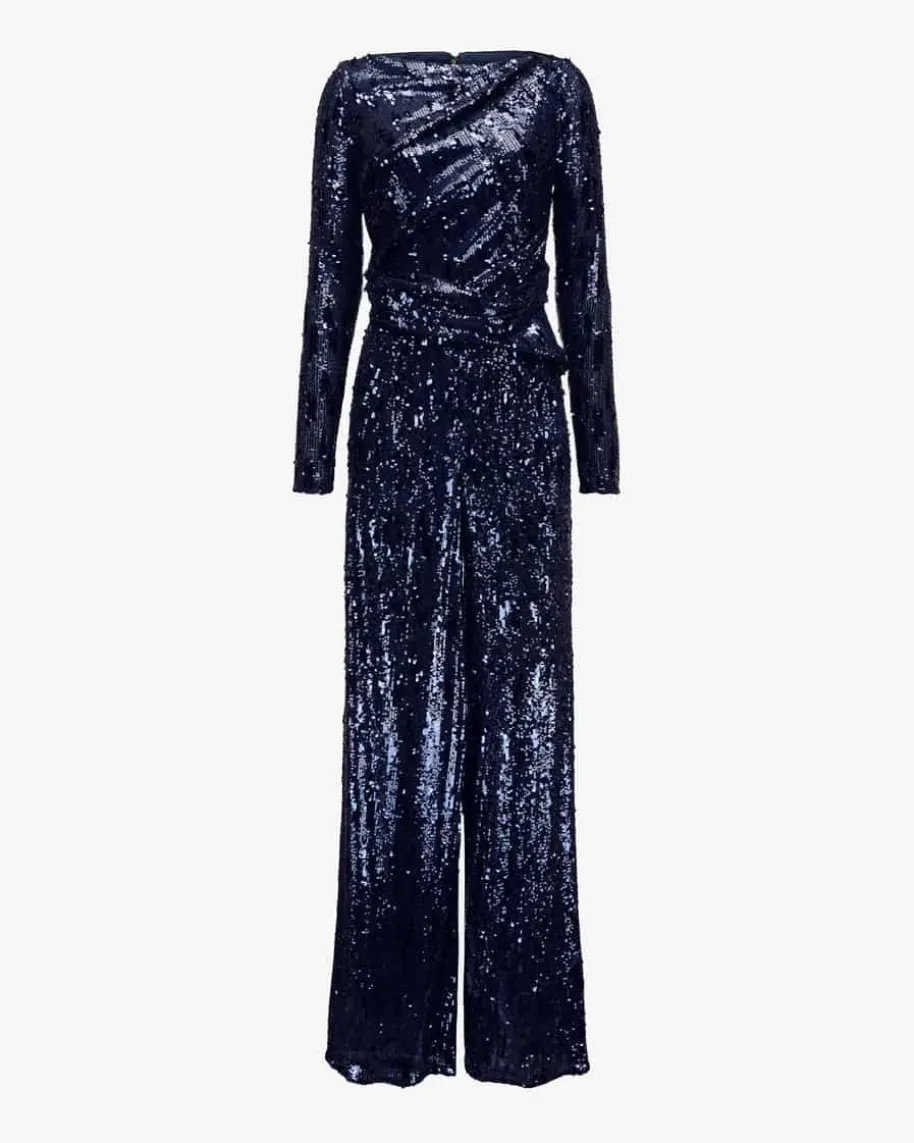 Jumpsuit für Damen von Talbot Runhof in Nachtblau. Dieses Modell überzeugt inkunstvoll drapierter Aufmachung, während das Pailletten-Dessin das Gesamtbildfunkelnd abrundet. Ob zur Filmpremiere oder in die Oper, dieser Jumpsuit ist dieglamouröse Variante der Hose statt einer Abendrobe.