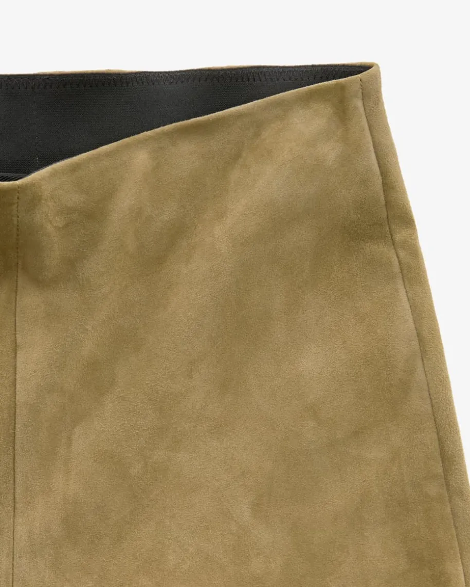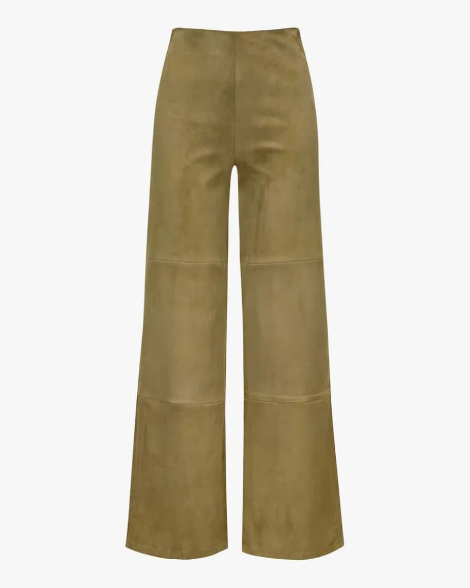 Karina Lederhose für Damen von Arma in Khaki. Das Modell überzeugt dank derhochwertigen Velourleder-Qualität mit angenehmen Tragemomenten, während dasschlichte Dessin einen vielseitigen Begleiter für modische Looks kreiert.