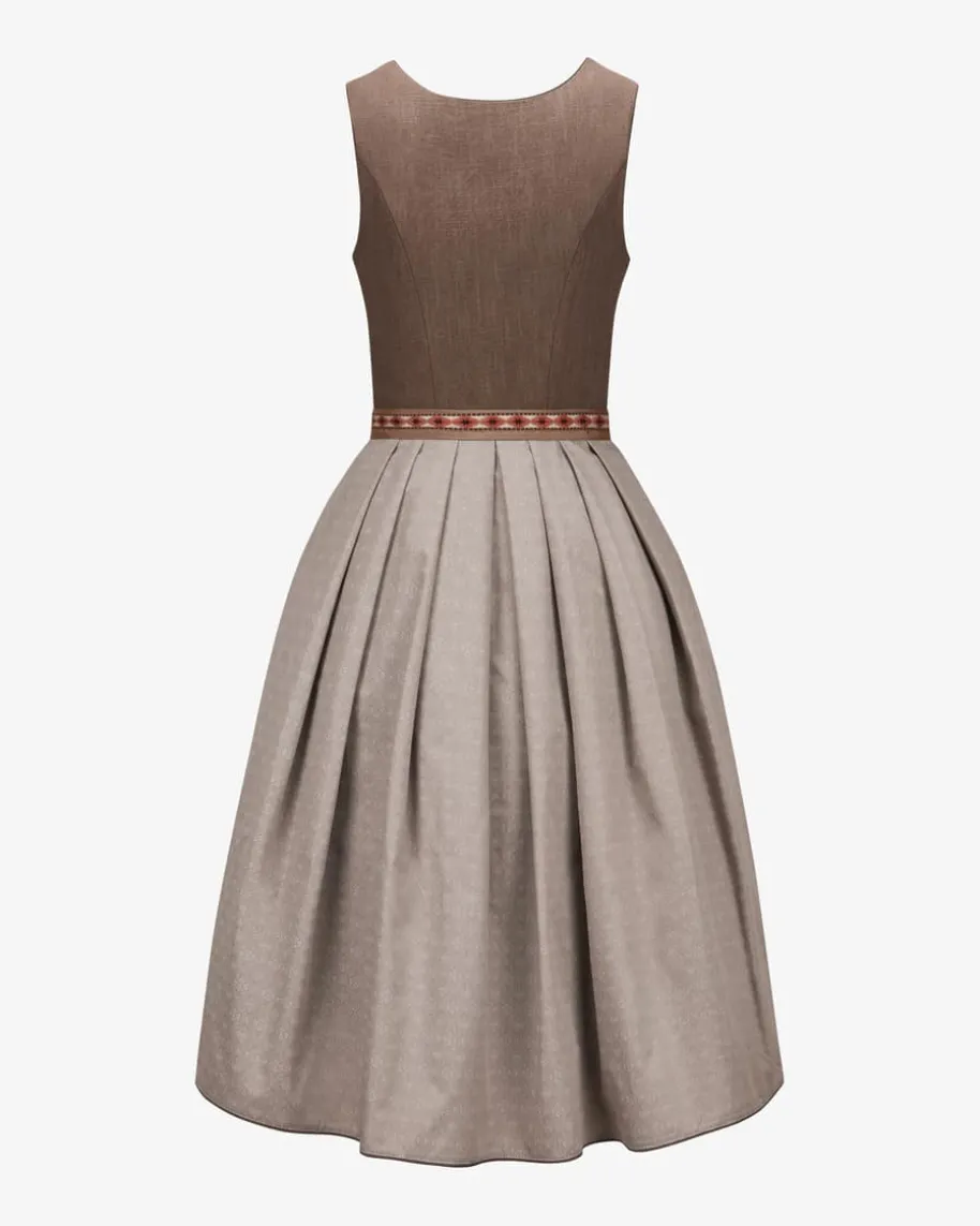 Karla Midi-Dirndl mit Schürze von Kinga Mathe in Taupe und Beige. Mit Liebe zumDetail entwirft das deutsche Label aufwendige Trachten- Kreationen mit demgewissen Etwas und überzeugt mit erlesener Stoffauswahl sowie kreative Designs.Das Modell überzeugt mit hochwertigem Leinen-Mieder, während der Unterrock mitVolants-Saum eine feminine Passform verleiht. Die changierende Schürzekomplettiert den Rock harmonisch.