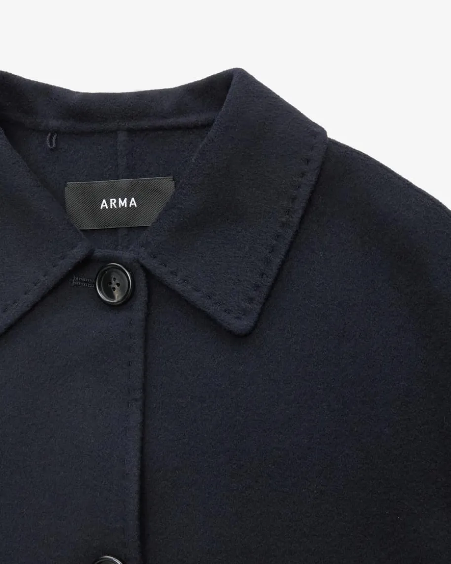Karry Wolljacke für Damen von Arma in Nachtblau. 1985 in Amsterdam gegründet,steht Arma für edle Leder- und Lammfellmode mit klarer Designsprache. Einherbstlicher Allrounder – Das Modell überzeugt dank der hochwertigen DoublefaceWoll-Qualität mit angenehmem Tragekomfort, während die verkürzte Silhouette dasGesamtbild stilvoll vollendet.