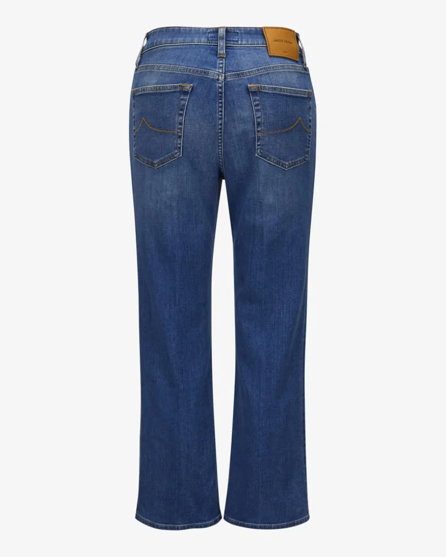 Kate Crop Jeans für Damen von Jacob Cohen in Blau. Dieses Modell präsentiertsich mit elastischer Baumwoll-Qualität für einen angenehmen Tragekomfort,während die verkürzte Passform und das leicht ausgestellte Bein einen modischenLook kreieren.