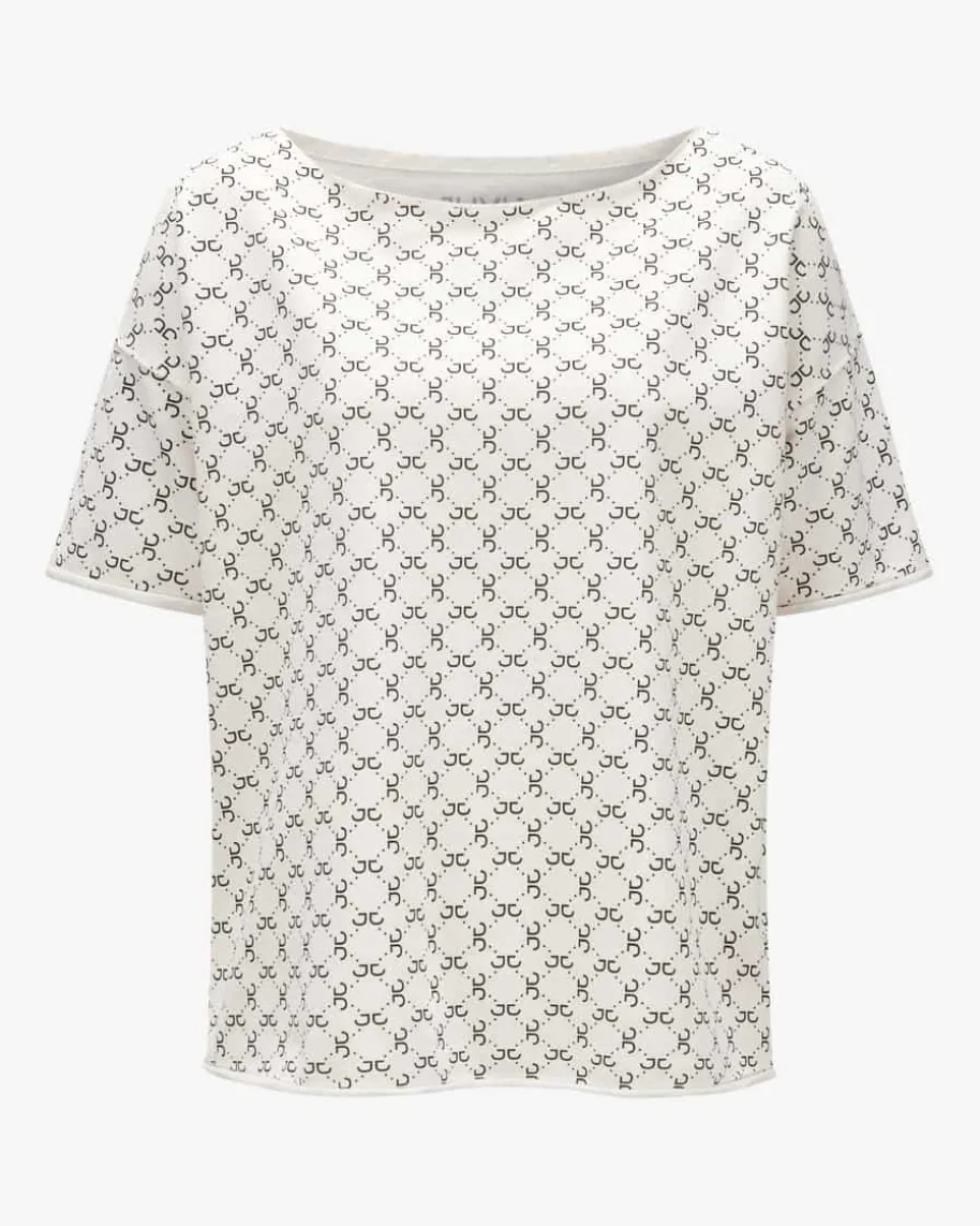 Kaya Sweatshirt für Damen von Juvia in Creme und Schwarz. Das kurzärmlige Modellpunktet dank hochwertigem Baumwoll-Sweat-Mix mit einer weichen Haptik, währendder Logo-Print einen modischen Favoriten für legere Looks schafft.