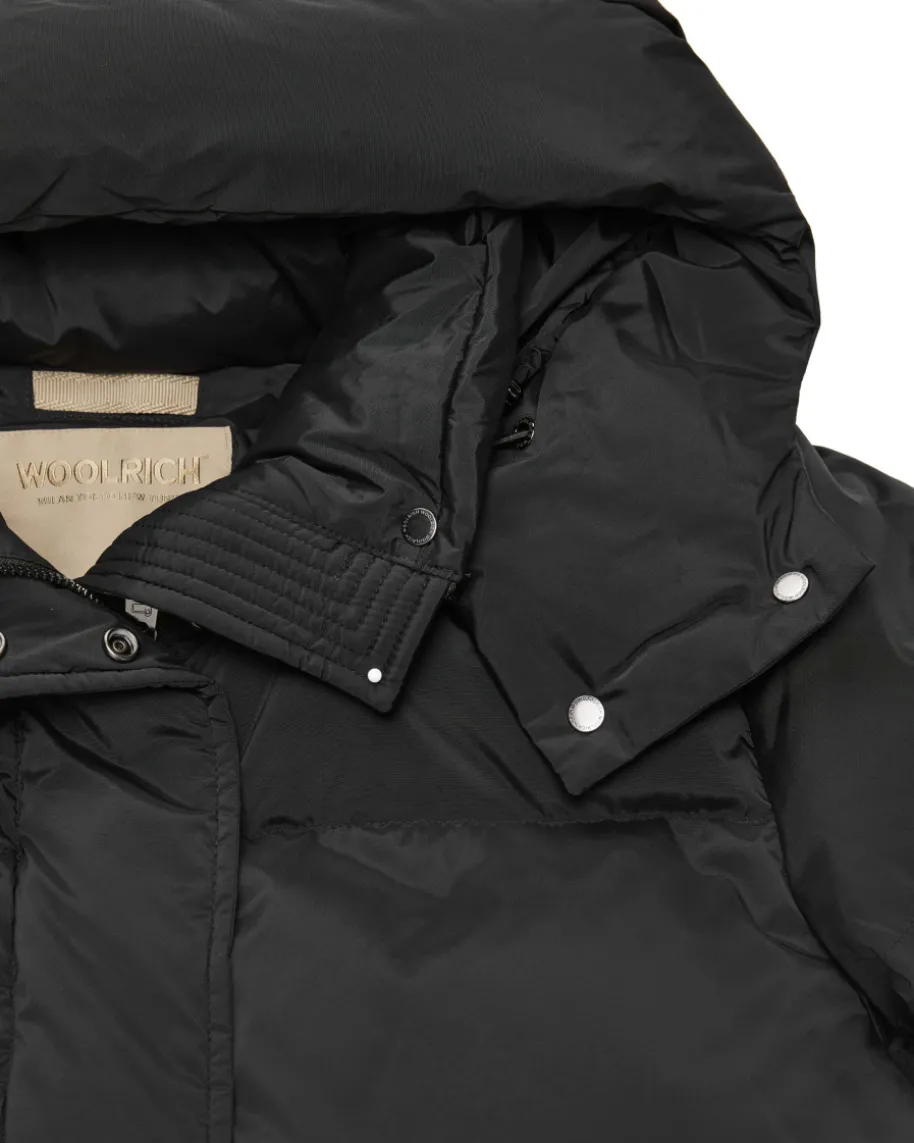 Kelly Long Daunenmantel für Damen von Woolrich in Schwarz. 1830 von John Rich inPennsylvania gegründet, erfreute sich das Label damals schon großer Beliebtheit– vor allem im Outdoor-Bereich. Auch dieses gesteppte Modell begeistert dankzahlreicher Funktionen sowie der warmen Daunen-Feder-Füllung als hochwertigerWinterbegleiter, während die abnehmbare Kapuze und Reißverschluss-Öffnungeneinen vielseitigen Look schaffen.
