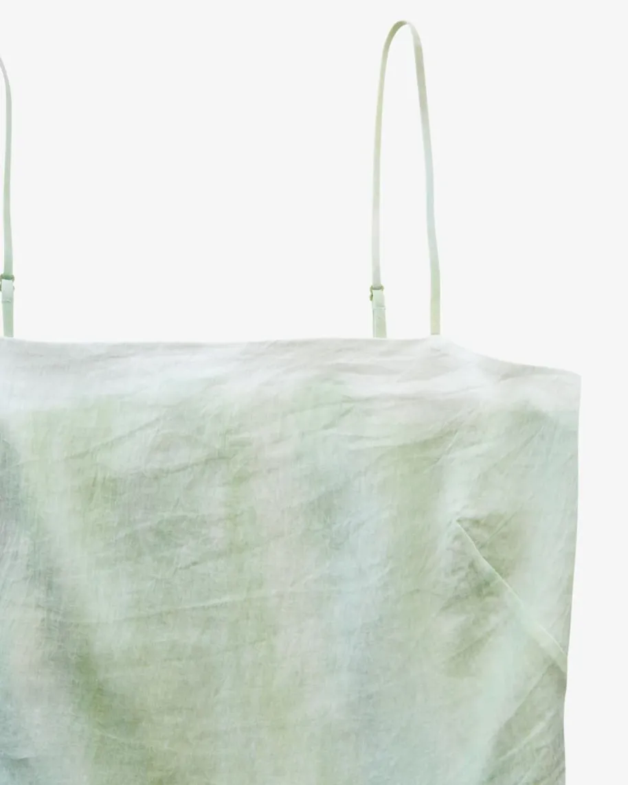 Kleid für Damen von Vince in Mint. Das Modell in schlichter Schnittformüberzeugt in fließender Qualität und Batik-Dessin, während gesmokte Details unddie feinen Träger einen femininen Begleiter für sommerliche Styles schaffen.