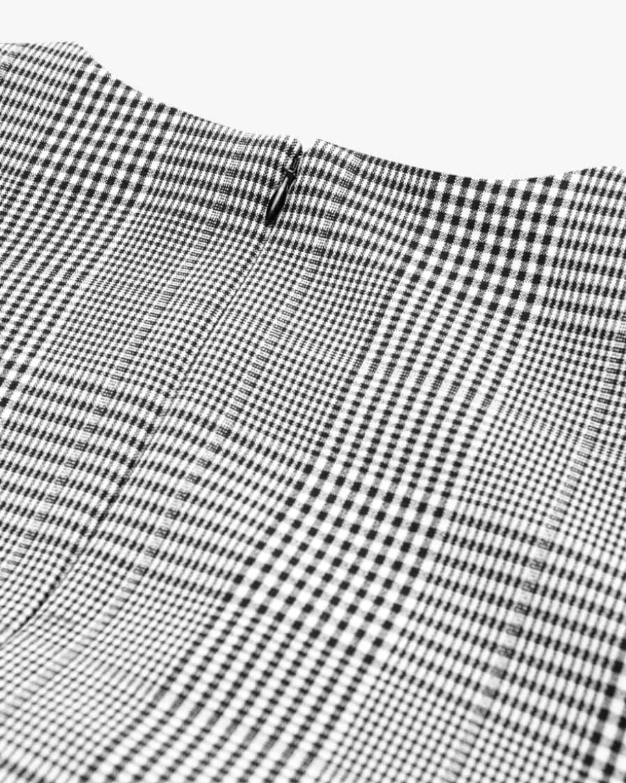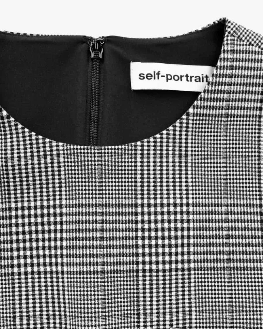 Kleid für Damen von Self-Portrait in Schwarz und Weiß. Das schmale Modellbegeistert mit feinem Karomuster und markantem Ballonrock, der für das gewisseEtwas sorgt. Die goldfarbenen Knöpfe verleihen dem Tailored Chic Look zudemeinen eleganten Charakter.
