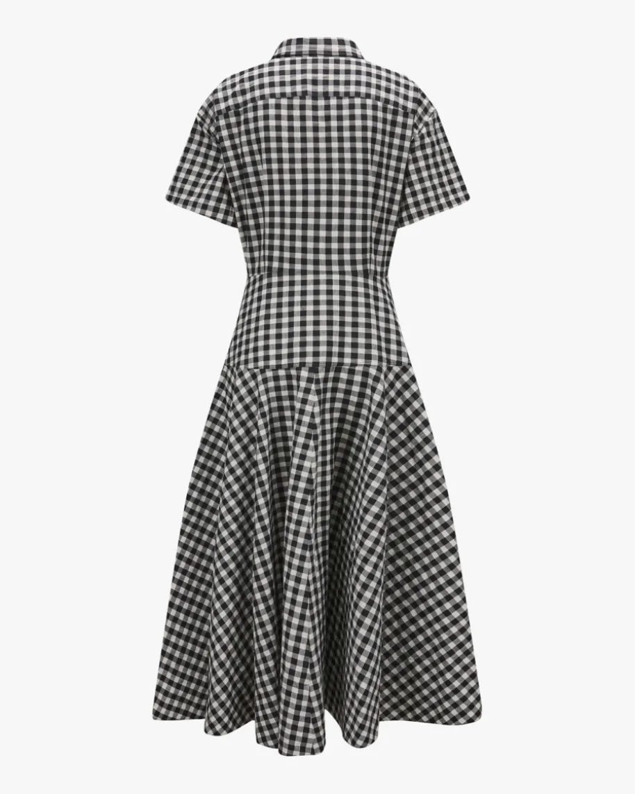 Kleid für Damen von Polo Ralph Lauren in Schwarz und Weiß. Dank hochwertigerBaumwoll-Qualität in leichter Seersucker-Aufmachung überzeugt das Modell mitangenehmem Tragegefühl, während die Hemdblusen-Silhouette mit weit ausgestelltemRock einen femininen Look kreiert. Das Vichykaro-Muster vollendet den Stylecharmant.