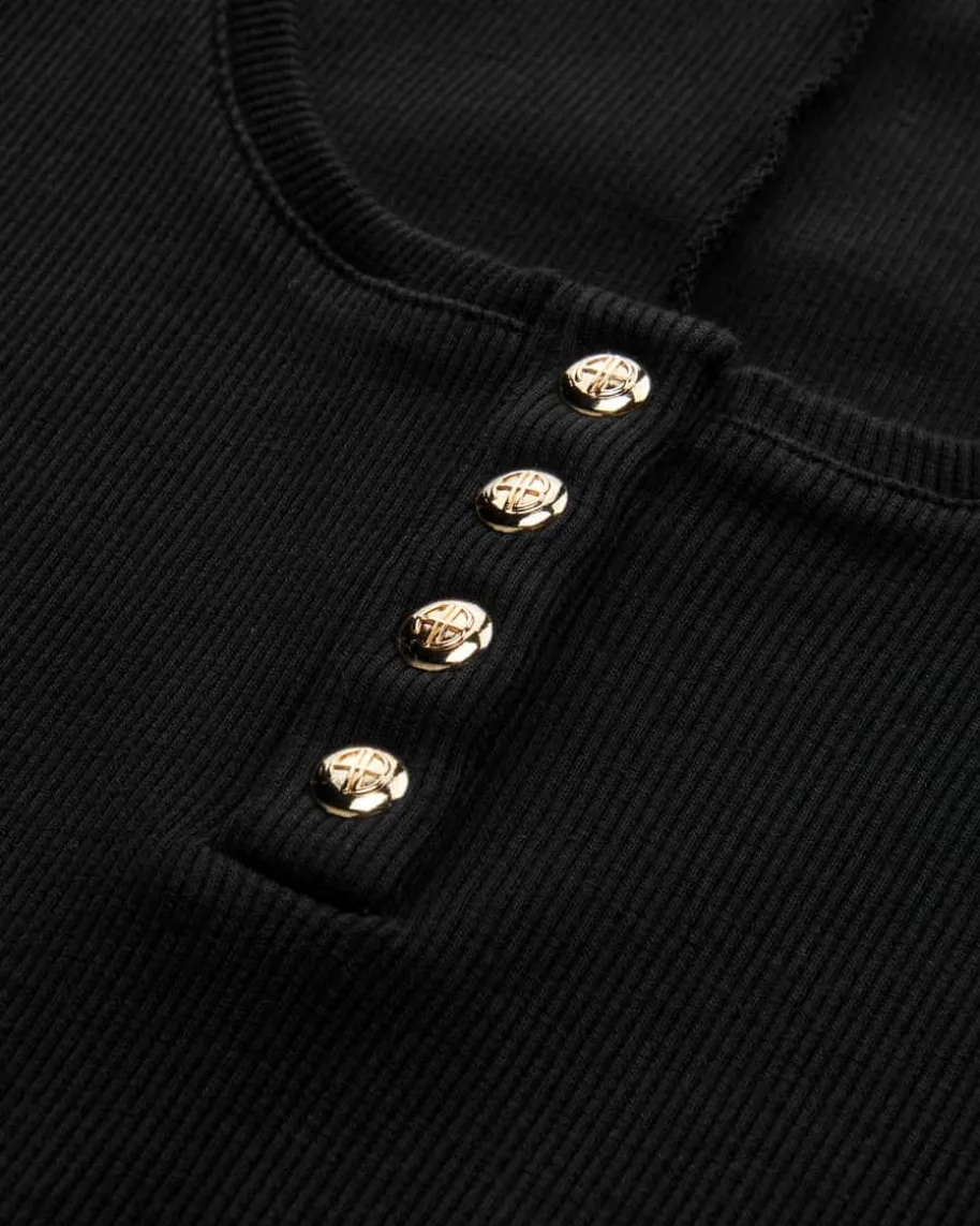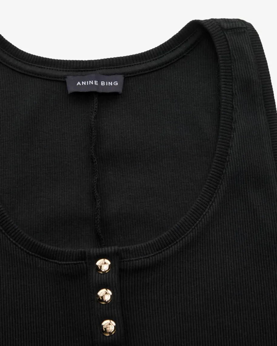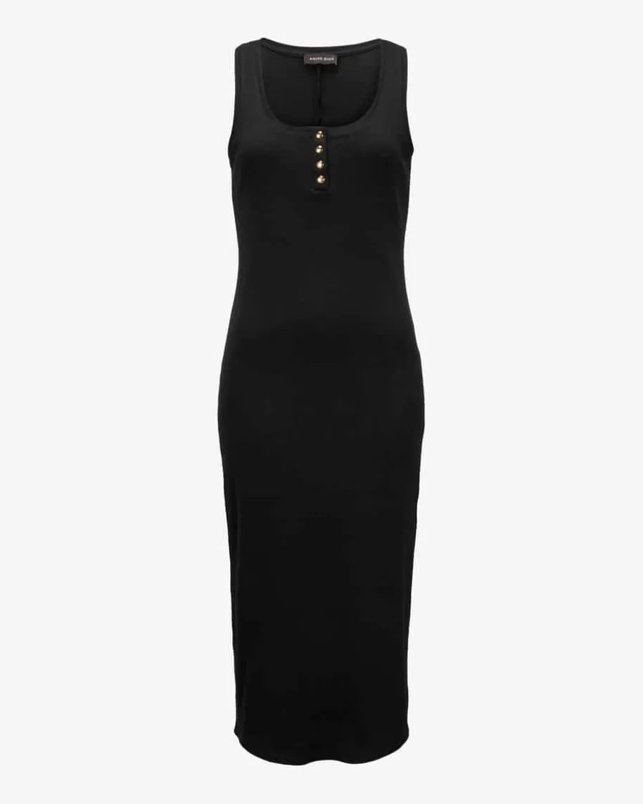 Kleid für Damen von Anine Bing in Schwarz. Das Modell präsentiert sich dank derelastischen Rippstrick-Qualität in modischer Aufmachung, während die schmalePassform und die goldfarbenen Logo-Druckknöpfe den Style gekonnt abrunden.