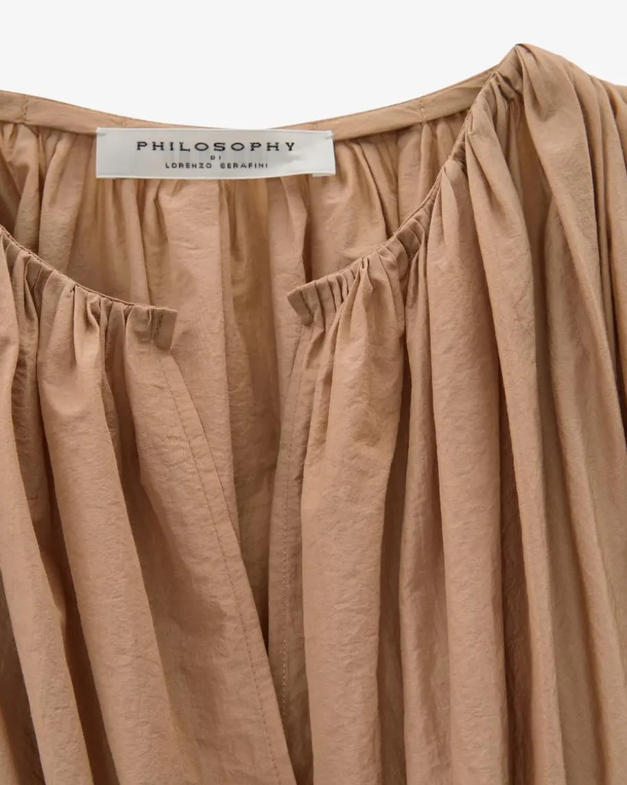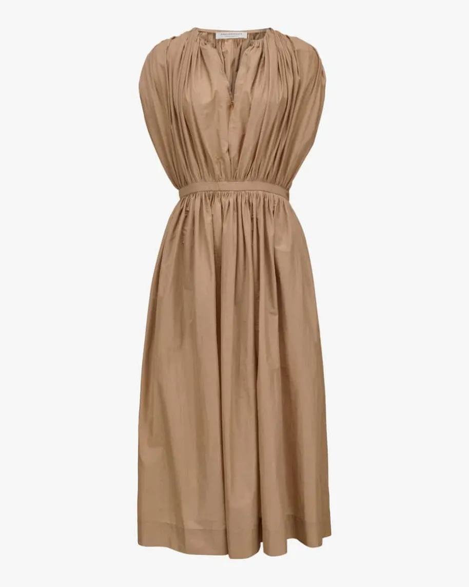 Kleid für Damen von Philosophy in Camel. Das Modell in feiner Qualität überzeugtin femininer Silhouette, welche dank der feinen Falten und besonderenSchnittform gekonnt in Szene gesetzt wird, während klassische Details densommerlichen Look gekonnt vollenden.