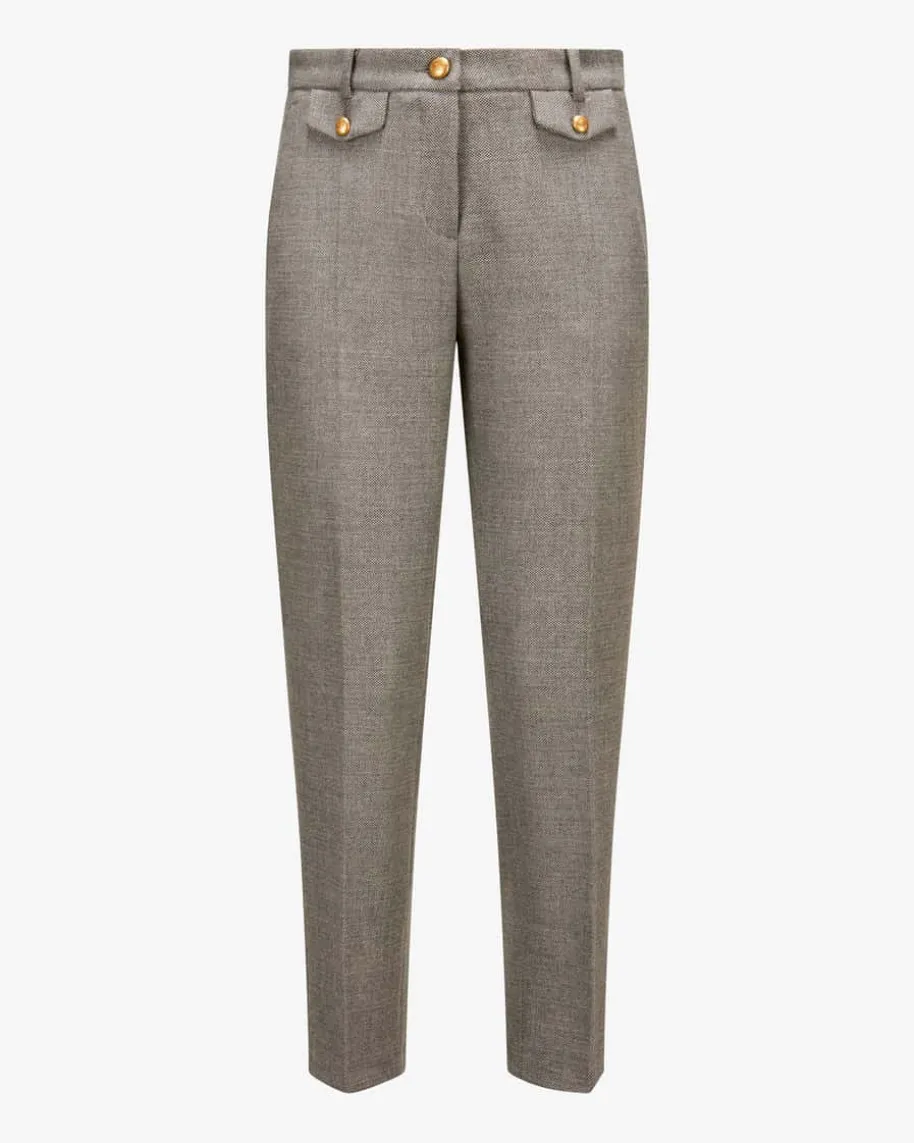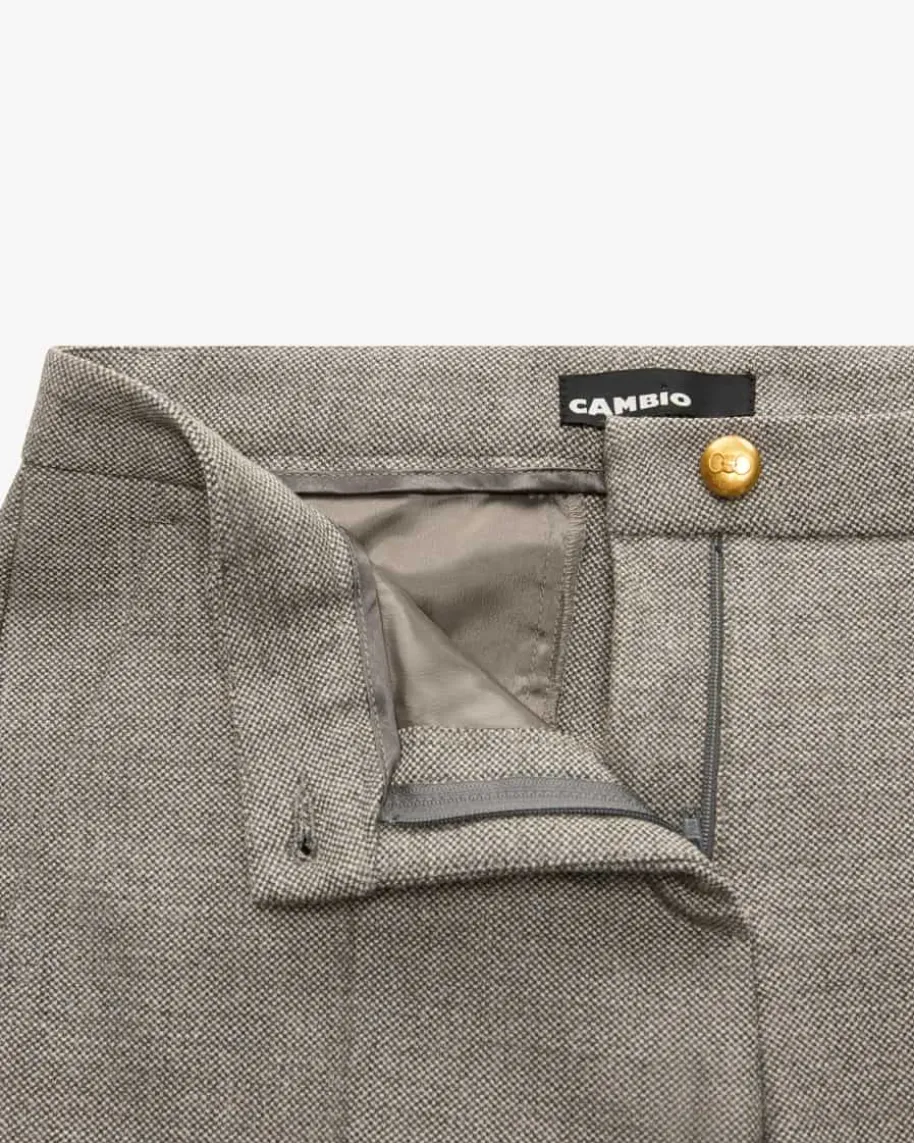 Krystal 7/8-Hose für Damen von Cambio in Graubraun. Mit zulaufendem Schnitt undweicher Stoff-Qualität überzeugt das fein gemusterte Modell des femininenModelabels, während klassische Details sowie goldfarbene Logo-Knöpfe einstilsicheres Highlight für sowohl modische Casual-Looks als auch zeitloseBusiness-Outfits schaffen.