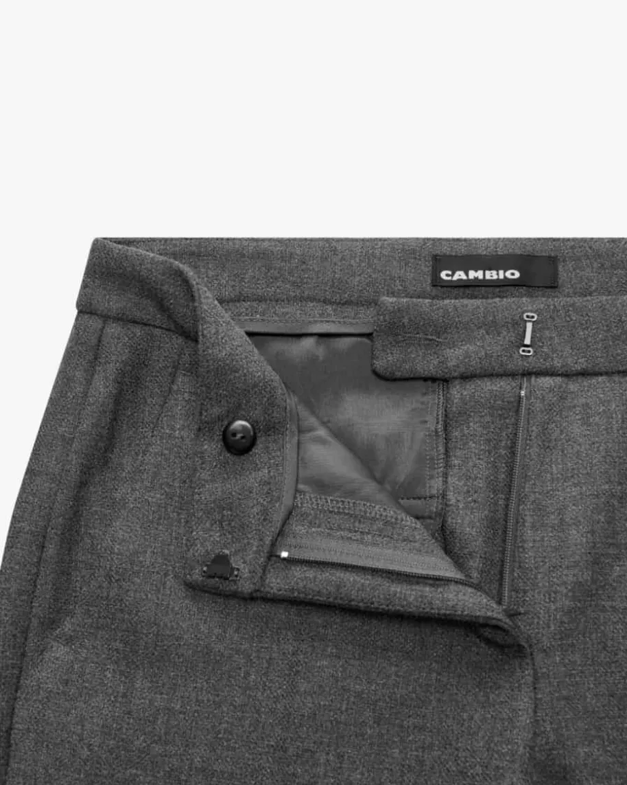 Krystal 7/8-Hose für Damen von Cambio in Anthrazit. Mit zulaufendem Schnitt undweicher Stoff-Qualität überzeugt die Hose des femininen Modelabels, währendklassische Details sowie Bügelfalten und der breite Hosenaufschlag einstilsicheres Highlight für sowohl modische Casual-Looks als auch zeitloseBusiness-Outfits schaffen.