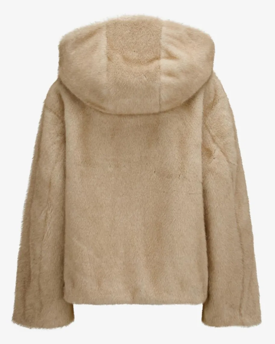Kunstfelljacke für Damen von Parosh in Sand. Das Modell in kuscheliger Fake-Fur-Aufmachung überzeugt in modernem Design in changierender Optik, während sonstigesportive Details wie die Kapuze einen legeren Alltagsbegleiter schaffen.