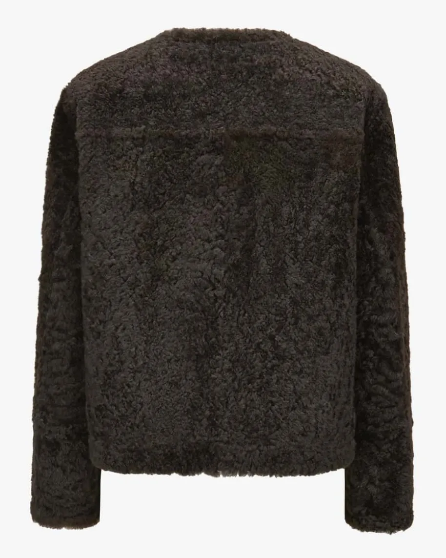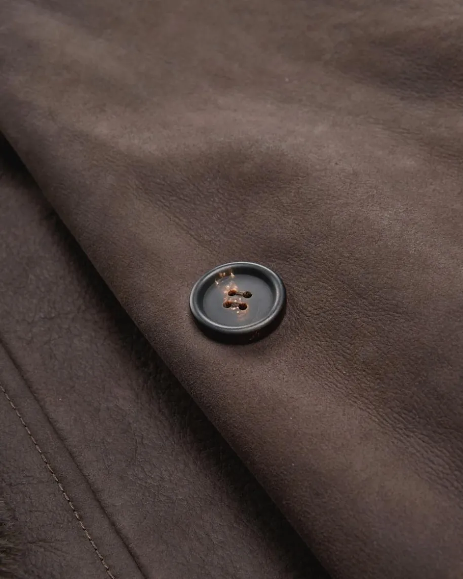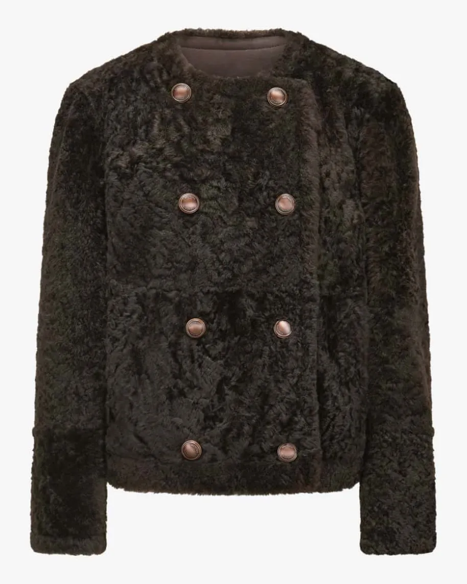 Lammfell-Lederjacke für Damen von Brunello Cucinelli in Schokolade. Mit diesemModell präsentiert das italienische Label einen vielseitigen Look aus weichemLammfell mit praktischer Wendefunktion. Klassische Details und die doppelreihigeKnopfleiste runden den kuscheligen Style mit modischen Country-Vibes ab.