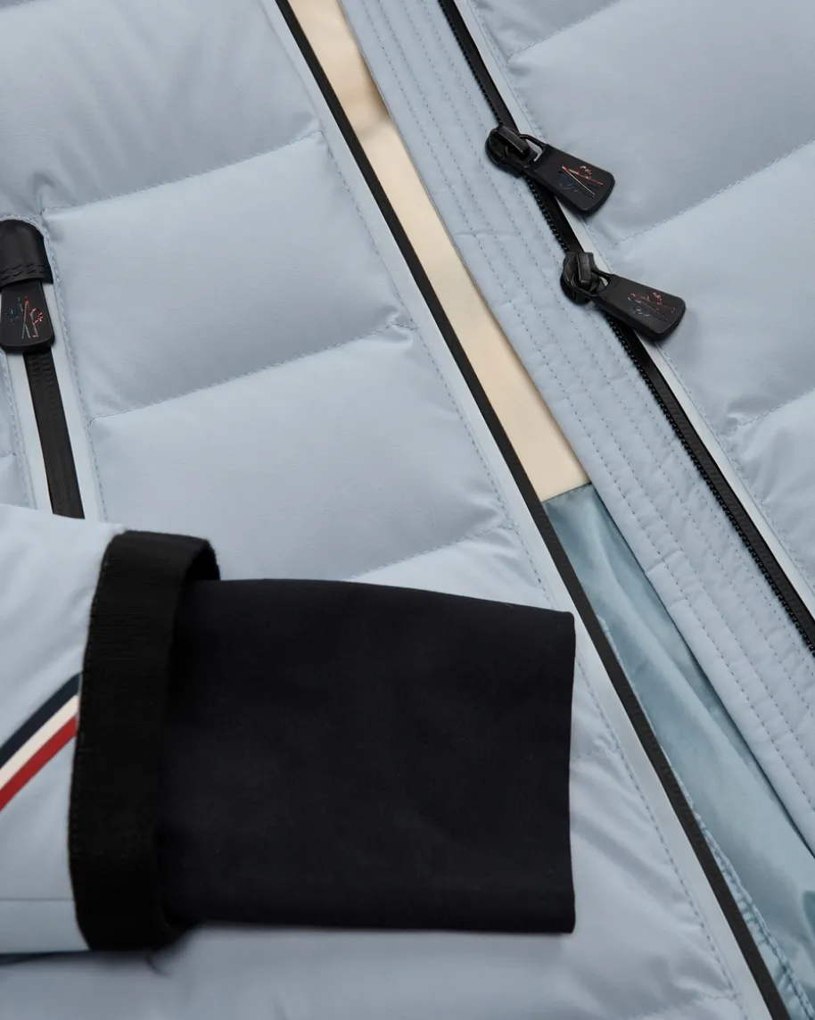 Lamoura Daunenjacke für Damen von Moncler Grenoble in Hellblau und Schwarz. Daswasserabweisende Modell überzeugt dank dem Einsatz von hochwertiger Daunen-Feder-Füllung und modischem Besatz aus Lammfell. Kontrastfarbene Paspeln undLogo-Details runden den sportiven Style aus der Performance & Style Kollektiongekonnt ab.