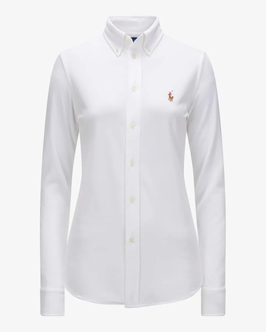 Langarm-Polo für Damen von Polo Ralph Lauren in Weiß. Mit schmalem Schnitt undweicher Piqué-Qualität präsentiert sich das sportiv- elegante Basic in Blusen-Optik, während die charakteristische Logo-Stickerei den letzten Schliffverleiht.