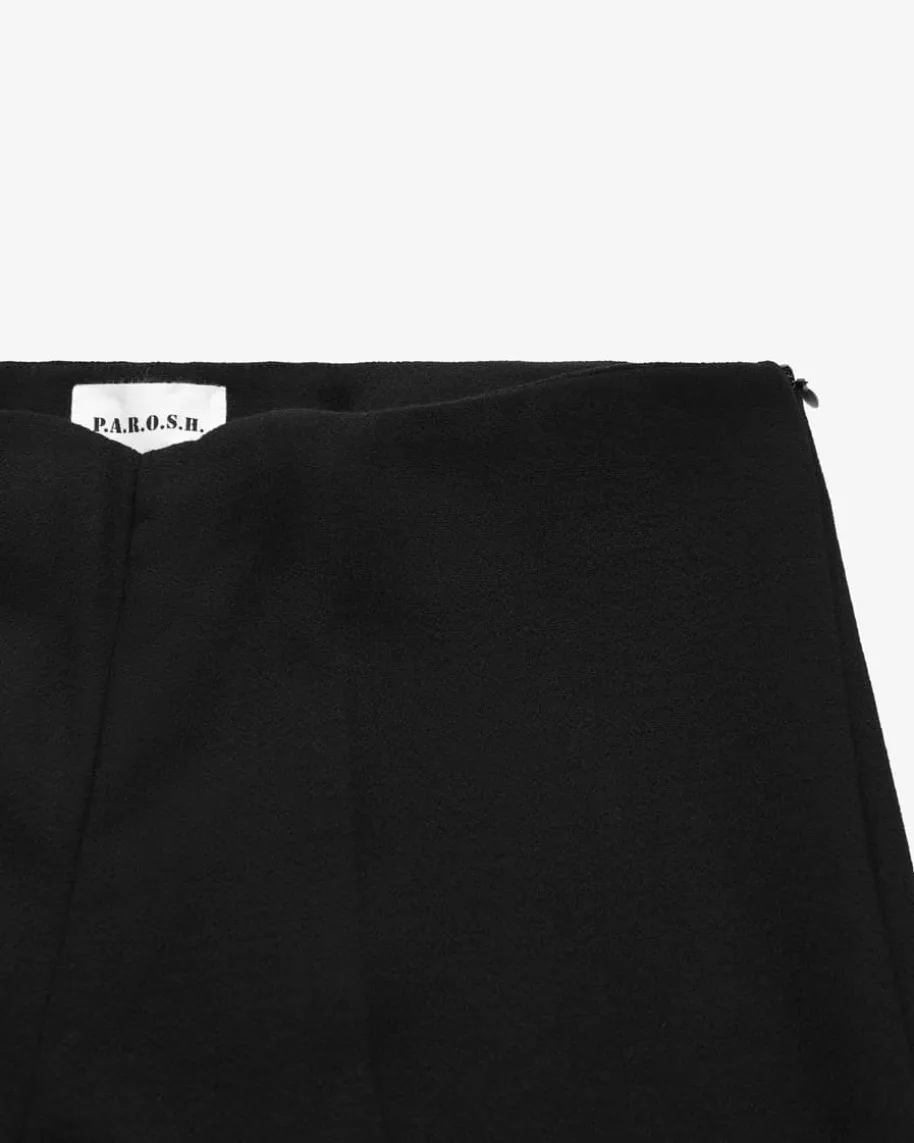 Lara Hose für Damen von Parosh in Schwarz. Zeitloser Luxus und moderne Eleganzmachen den Stil von Parosh aus. Dieses Modell präsentiert sich mit weiterSchnittführung und hohem Bund, während die feste Crepe-Qualität aus hochwertigemSchurwoll-Mix einen modernen Begleiter mit edlem Touch kreiert.