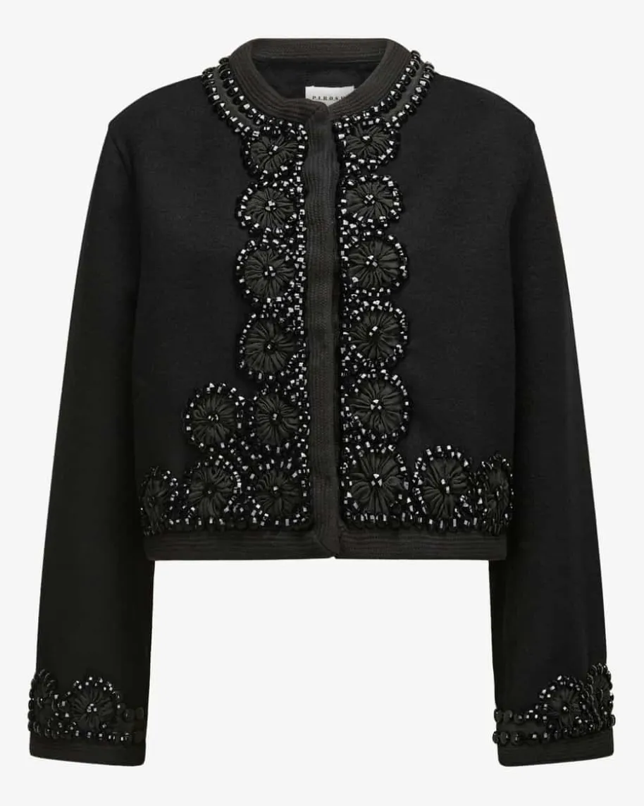 Leak25 Jacke aus Wolle für Damen von Parosh in Schwarz. Die Marke steht fürverspielte Designs mit Vintage-Flair – farbenfrohe Prints, Glitzer und Retro-Vibes made in Italy. Das Modell in modischer Aufmachung punktet sowohl mithaptischen als auch optischen Highlights dank der Verarbeitung aus weicher Wolleund den handbestickten Schmucksteinen, die einen Hingucker für edle Lookskreiert.