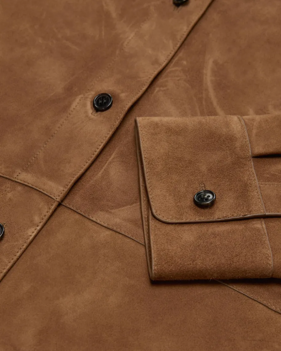 Lederblazer für Damen von Theory in Braun. Gefertigt aus hochwertigerVeloursleder-Qualität punktet das Modell in moderner Country-Aufmachung, währendklassische Details einen modischen Kontrast zur Material-Verarbeitung erstellt.