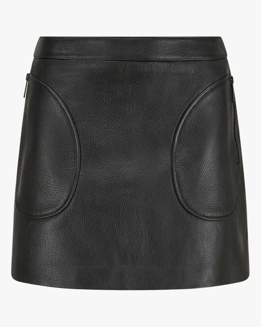 Lederrock für Damen von Self-Portrait in Schwarz. Das Londoner Label steht fürmoderne Cocktailkleider mit Spitze, Cut-Outs und femininer Detailverliebtheit.Auch dieses Modell präsentiert sich mit hochwertiger Lammleder-Qualität ingenarbter Optik, während die aufgesetzten Taschen und die kurze Passform einefeminine Silhouette im Biker-Stil schaffen.