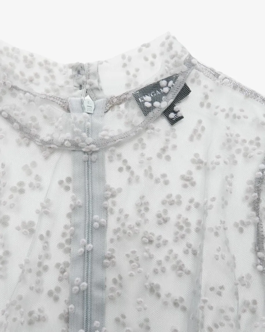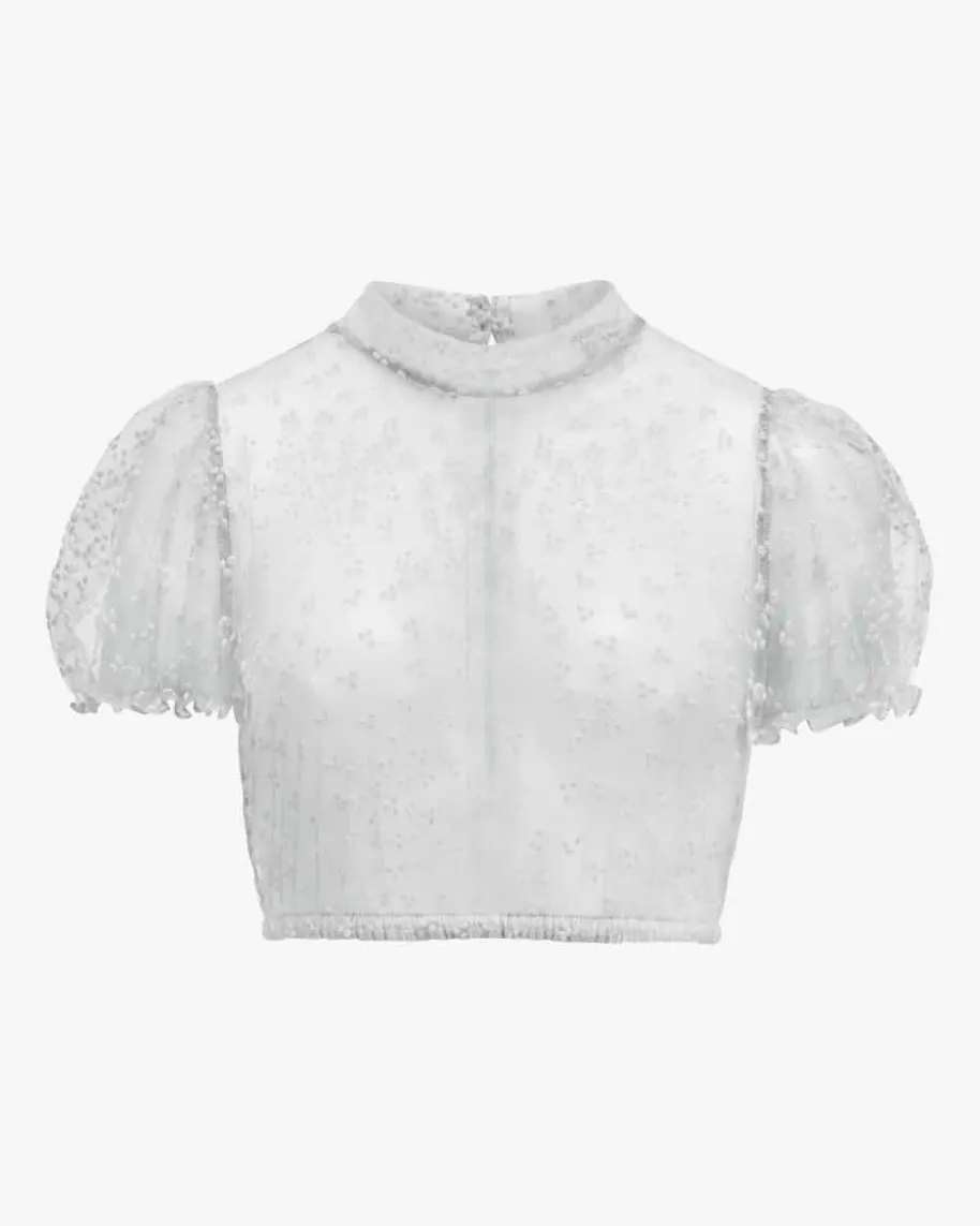 Leni Dirndlbluse Transparent für Damen von Kinga Mathe inGrau. Dashochgeschlossene Modell mit Puffärmeln zeichnet sich durchdie semi-transparenteTüll-Qualität aus, welche dank feinem Punktemuster stilvollergänzt wird – Einromantischer Begleiter für Ihren Trachten-Look.
