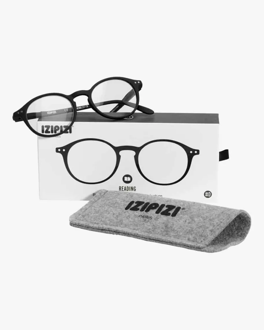 Lesebrille von Izipizi in Schwarz. Fashionable Reading – Flexible Bügel,besonders leichtes Gewicht und eine angesagte runde Rahmen-Form mit modischemFarbton machen die limitierte Lesebrille zu einem funktionellen und zugleichstilvollen Accessoire. Eine im Lieferumfang enthaltene Filz-Hülle mit Logo-Schriftzug schützt die Brille der Collection #D.