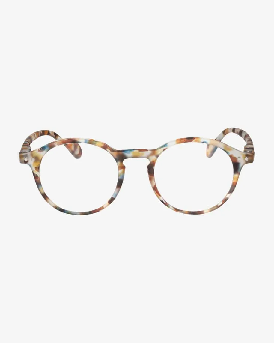 Lesebrille von Izipizi in Hellblau und Braun. Fashionable Reading – FlexibleBügel, besonders leichtes Gewicht und eine angesagte runde Rahmen-Form mitmodischem Farbton machen die limitierte Lesebrille zu einem funktionellen undzugleich stilvollen Accessoire. Eine im Lieferumfang enthaltene Filz-Hülle mitLogo-Schriftzug schützt die Brille der Collection #D.