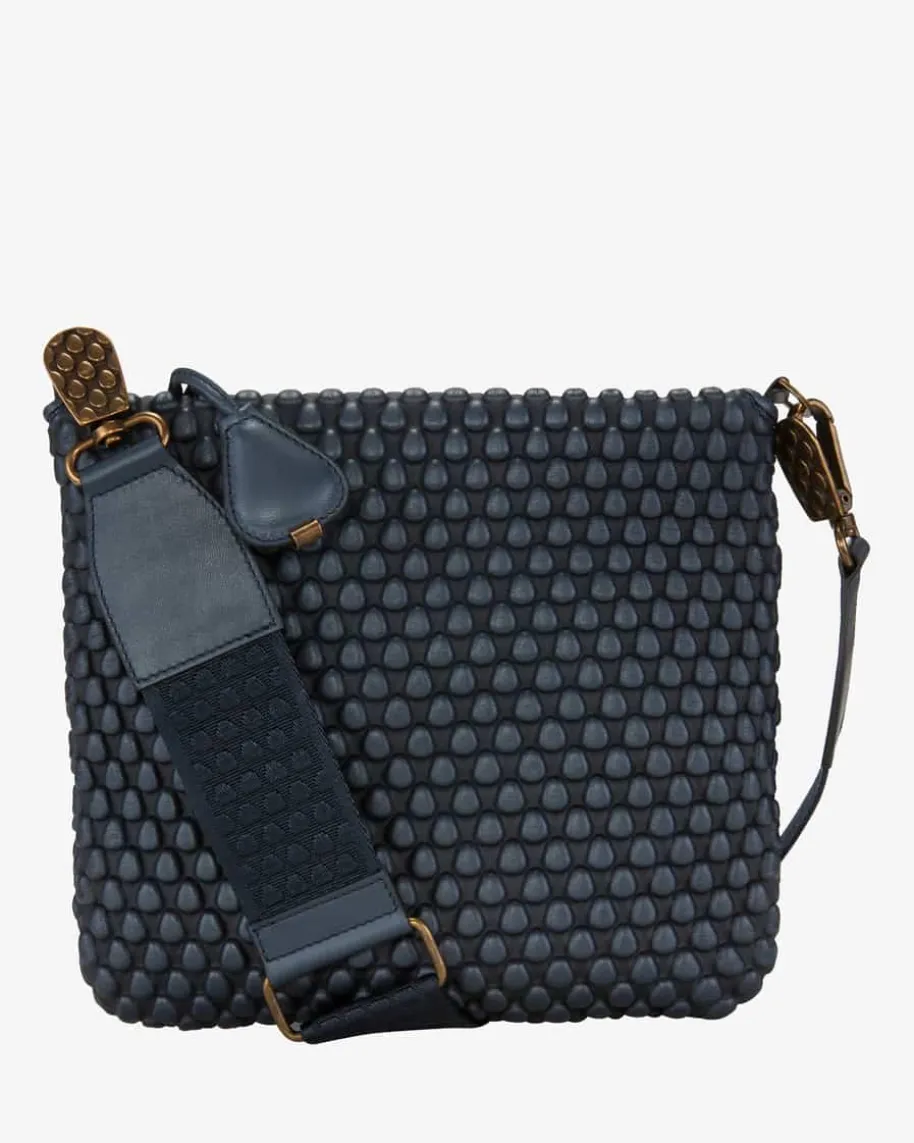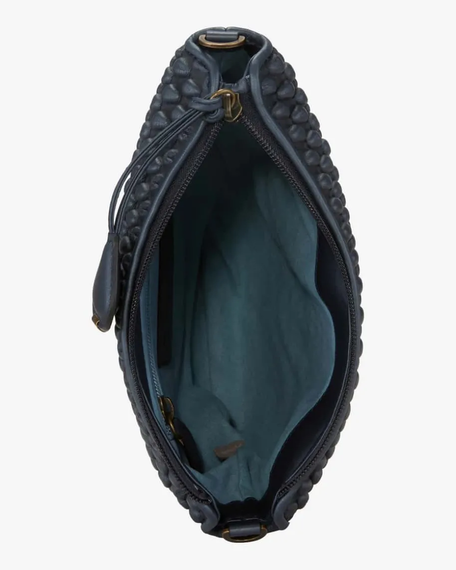 Liberty Umhängetasche für Damen von Tissa Fontaneda in Nachtblau. Das 2010gegründete Label vereint Handwerkliches Können und Liebe zum Detail. Die soforterkennbare „Bubble Bag“ ist zum Markenzeichen der Kollektion Tissa Fontanedageworden. Auch dieses Modell begeistert in charakteristischer Aufmachung mitstrukturierter Optik, während der breite Schulterriemen sportive Akzente setzt.