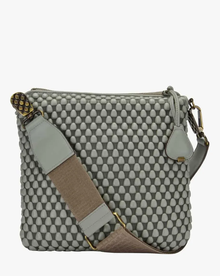 Liberty Umhängetasche für Damen von Tissa Fontaneda in Blaugrau. Das 2010gegründete Label vereint Handwerkliches Können und Liebe zum Detail. Die soforterkennbare „Bubble Bag“ ist zum Markenzeichen der Kollektion Tissa Fontanedageworden. Auch dieses Modell begeistert in charakteristischer Aufmachung mitstrukturierter Optik, während der breite Schulterriemen sportive Akzente setzt.
