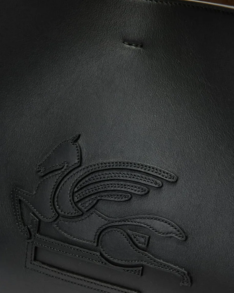 Libra Medium Tasche für Damen von Etro in Schwarz. Das Modell avanciert dankhochwertigem Leder und geräumigen Hauptfach zu ihrem alltäglichen-Begleiter,während das charakteristische Logo das Gesamtbild harmonisch abrundet.