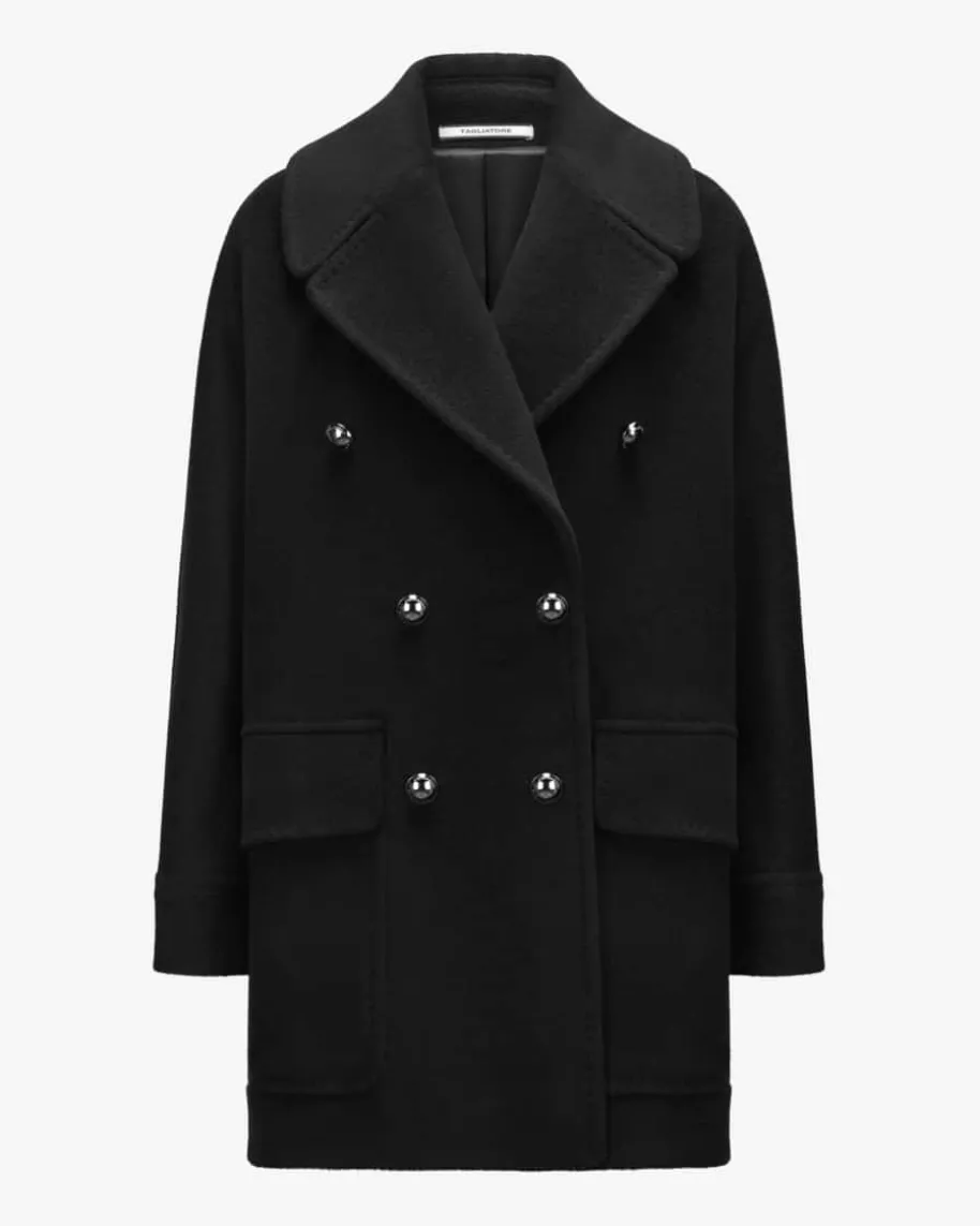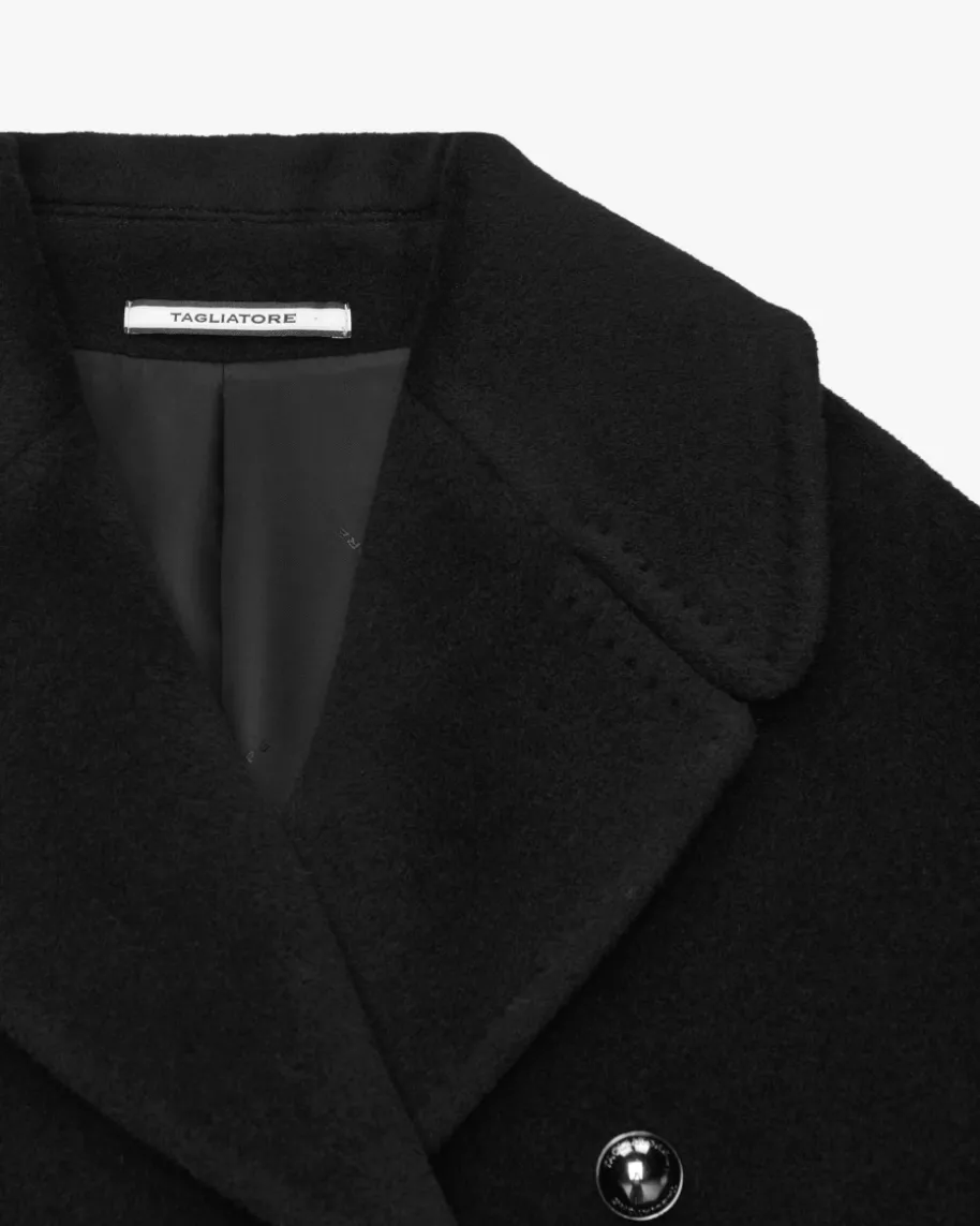 Lilian Wollmantel für Damen von Tagliatore in Schwarz. Das weite Modell bestichtdank der strukturierten Schurwoll-Qualität mit einer angenehmen Haptik, währenddas zeitlose Design und die moderne Schnittführung ein modisches Gesamtbildkreieren.