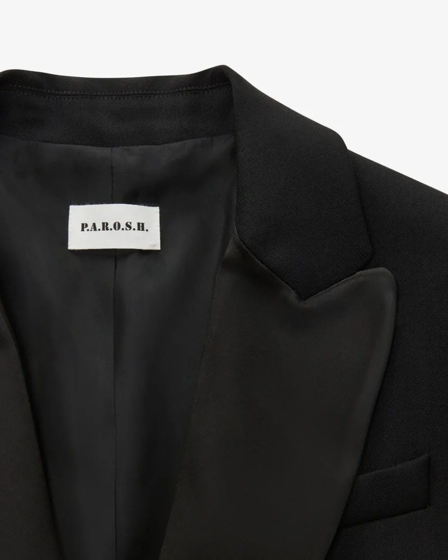 Liliuxy25 Blazer für Damen von Parosh in Schwarz. Die Marke steht für verspielteDesigns mit Vintage-Flair – farbenfrohe Prints, Glitzer und Retro-Vibes made inItaly. Das Modell in taillierter Passform und angenehmer Haptik aus hochwertigemSchurwoll-Mix, überzeugt in femininer Aufmachung dank des changierendenReverskragens und avanciert so zu einem idealen Begleiter für edle Looks.