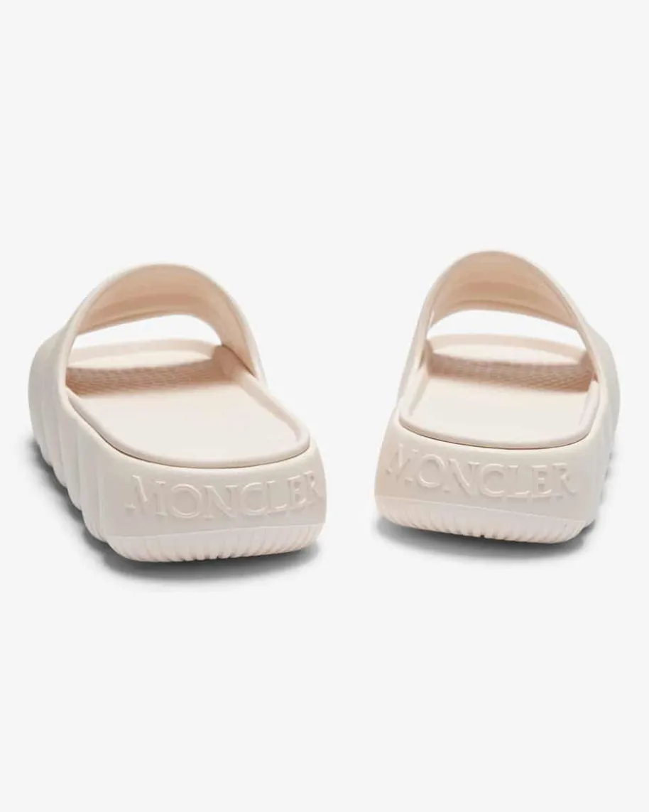 Lilo Pantoletten für Damen von Moncler in Creme. Das Modell präsentiert sich inraffinierter Aufmachung und gestepptem Design, wodurch ein modischer Begleiterfür den Sommer entsteht. Logo-Details runden das Gesamtbild gekonnt ab.