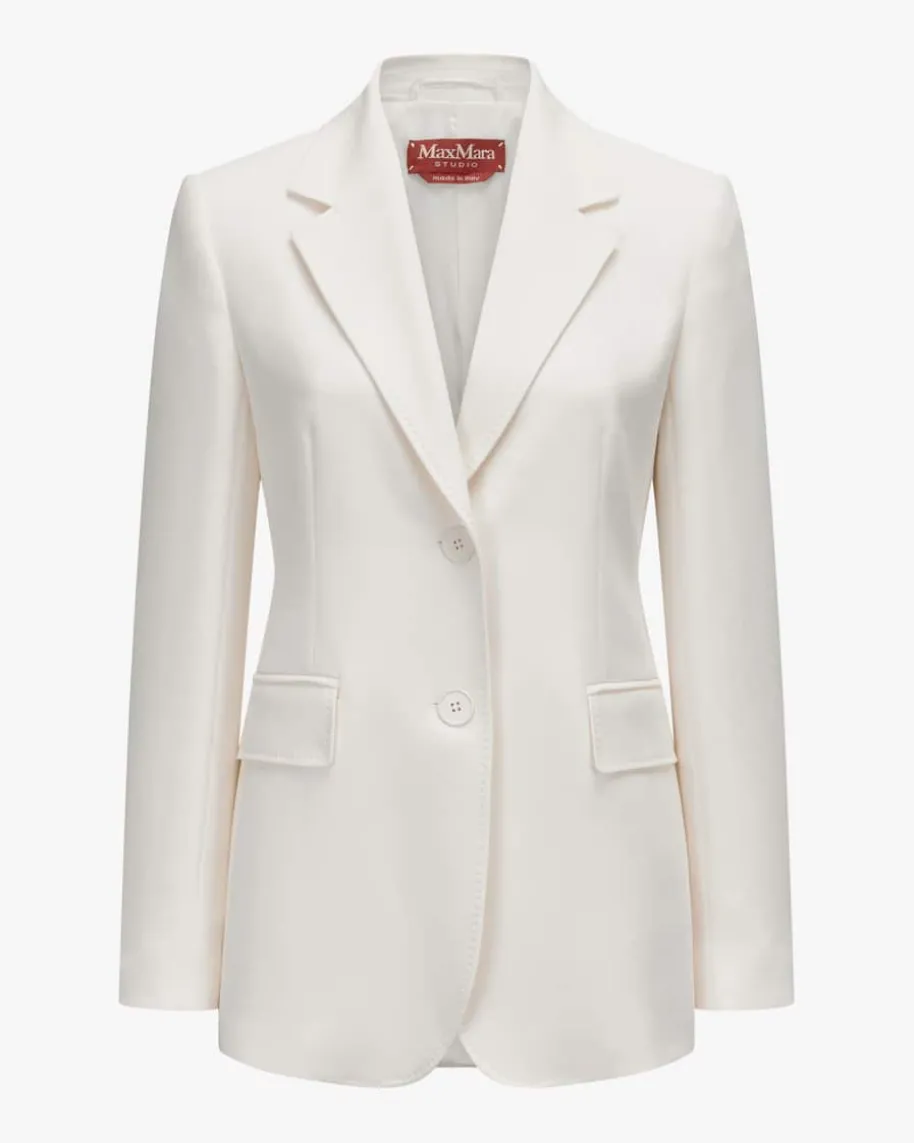 Linz Blazer für Damen von Max Mara Studio in Weiß. Das zeitlose Design sowie dieklassischen Details sorgen für einen eleganten Begleiter, während die tonalenKnöpfe den letzten Schliff verleihen. In Kombination mit der passenden Hoseschaffen sie einen Look der Power ausstrahlt.