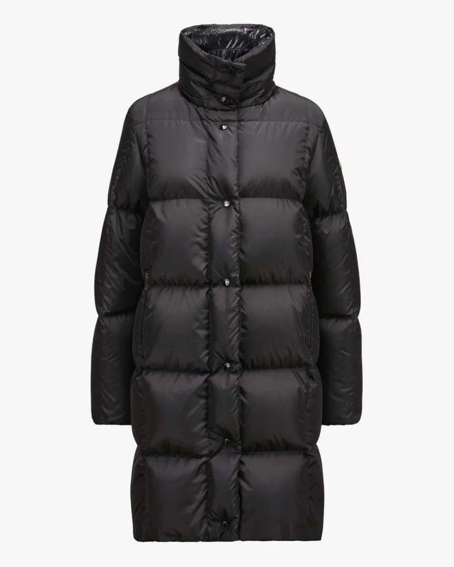 Litte Daunenmantel für Damen von Moncler in Schwarz. Denkt man an hochwertige,warme Daunenjacken, kommt einem unweigerlich das italienische TraditionslabelMoncler in den Sinn. Auch mit diesem langen Modell präsentiert das Label dankder hochwertigen Daunen-Feder-Füllung einen optimalen Begleiter für die kühlereJahreszeit, während die sportiven Details und die abtrennbare Kapuze einenmodischen und zugleich komfortablen Favoriten kreieren.