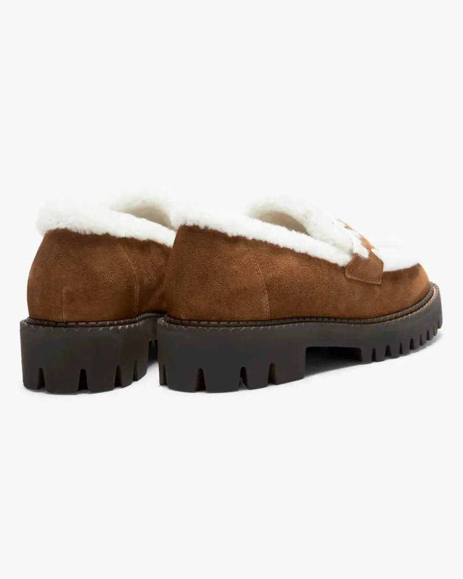 Loafer für Damen von Trumans in Braun und Weiß. Das Modell besticht alsoptisches und haptisches Highlight, welches durch den kontrastreichen Material-Mix in Kombination mit den Häkel-Rändern am Querriegel geschaffen wird. Zugleichhält Sie das weiche Lammfell-Innenfutter und die markante Gummisohle optimalwarm.