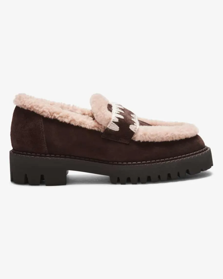 Loafer für Damen von Trumans in Dark Chocolate und Sand. Das Modell besticht alsoptisches und haptisches Highlight, welches durch den kontrastreichen Material-Mix in Kombination mit den Häkel-Rändern am Querriegel geschaffen wird. Zugleichhält Sie das weiche Lammfell-Innenfutter und die markante Gummisohle optimalwarm.