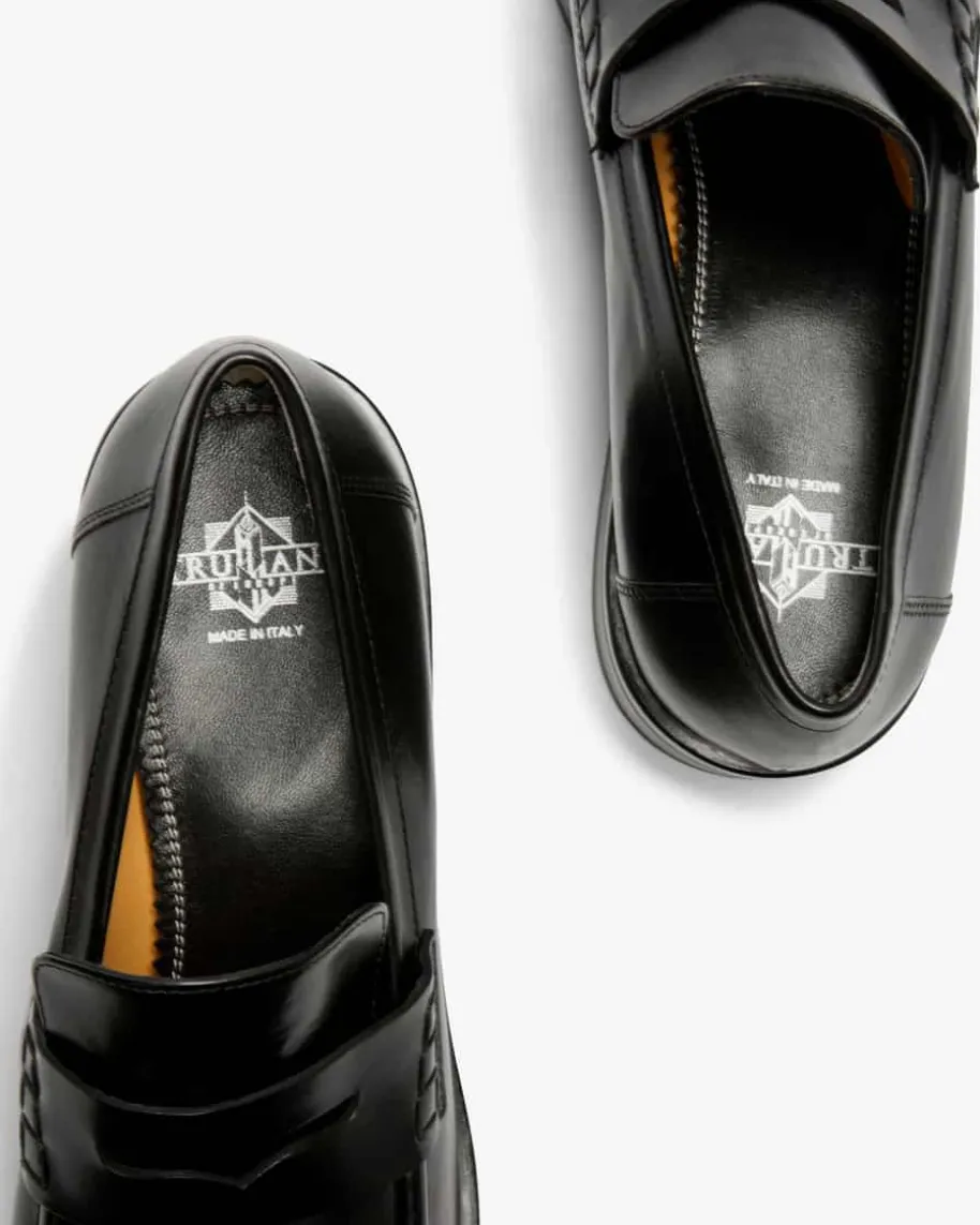 Loafer für Damen von Trumans in Schwarz. Das Modell besticht durch stilvolle undzugleich hochwertige Aufmachung, während die Verwendung von glattem Leder sowieder dezente Blockabsatz denedlen Charakter gekonnt unterstreichen.