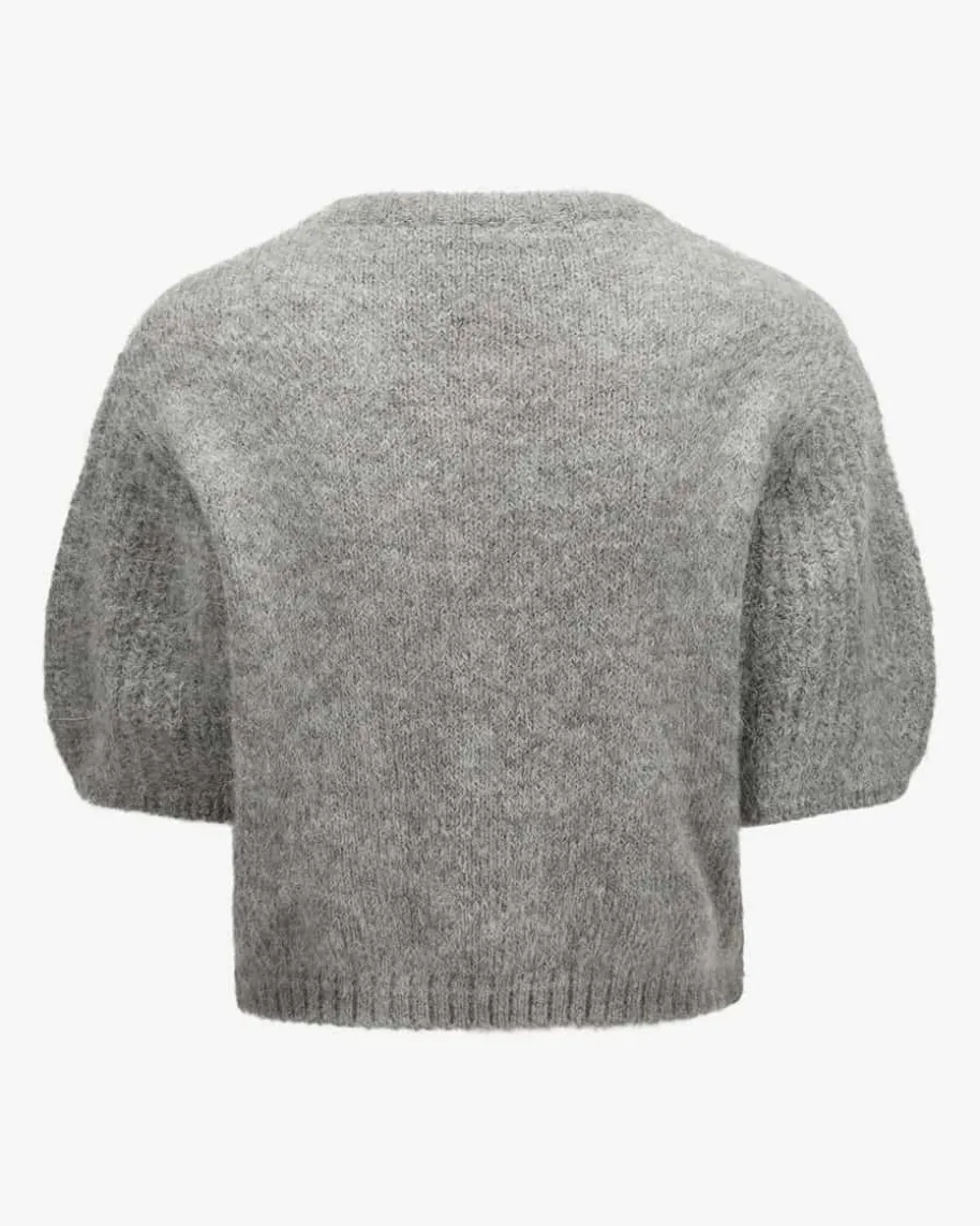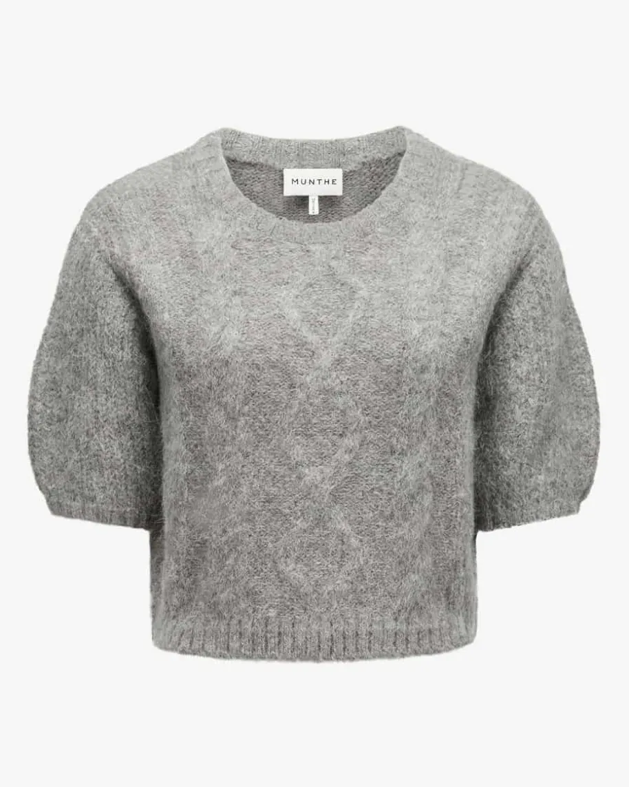 Loline Strickshirt für Damen von Munthe in Grau. Das skandinavische Label ausKopenhagen – feminin & cool. Auch dieses Modell begeistert mit verkürzter Boxy-Passform und klassischem Zopfstrickmuster, während der weiche Woll-Mix dasmodische Gesamtbild gekonnt abrundet.