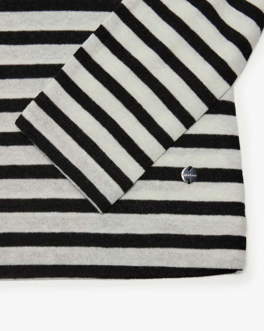 Longsleeve für Damen von Windsor in Schwarz und Creme. Das gestreifte Modellzeichnet sich besonders durch die elastische Kombination aus Lyocell und Wolleaus, welche dank der Feinstrick-Qualität eine angenehme Haptik erhält – Einmoderner Layering-Favorit.