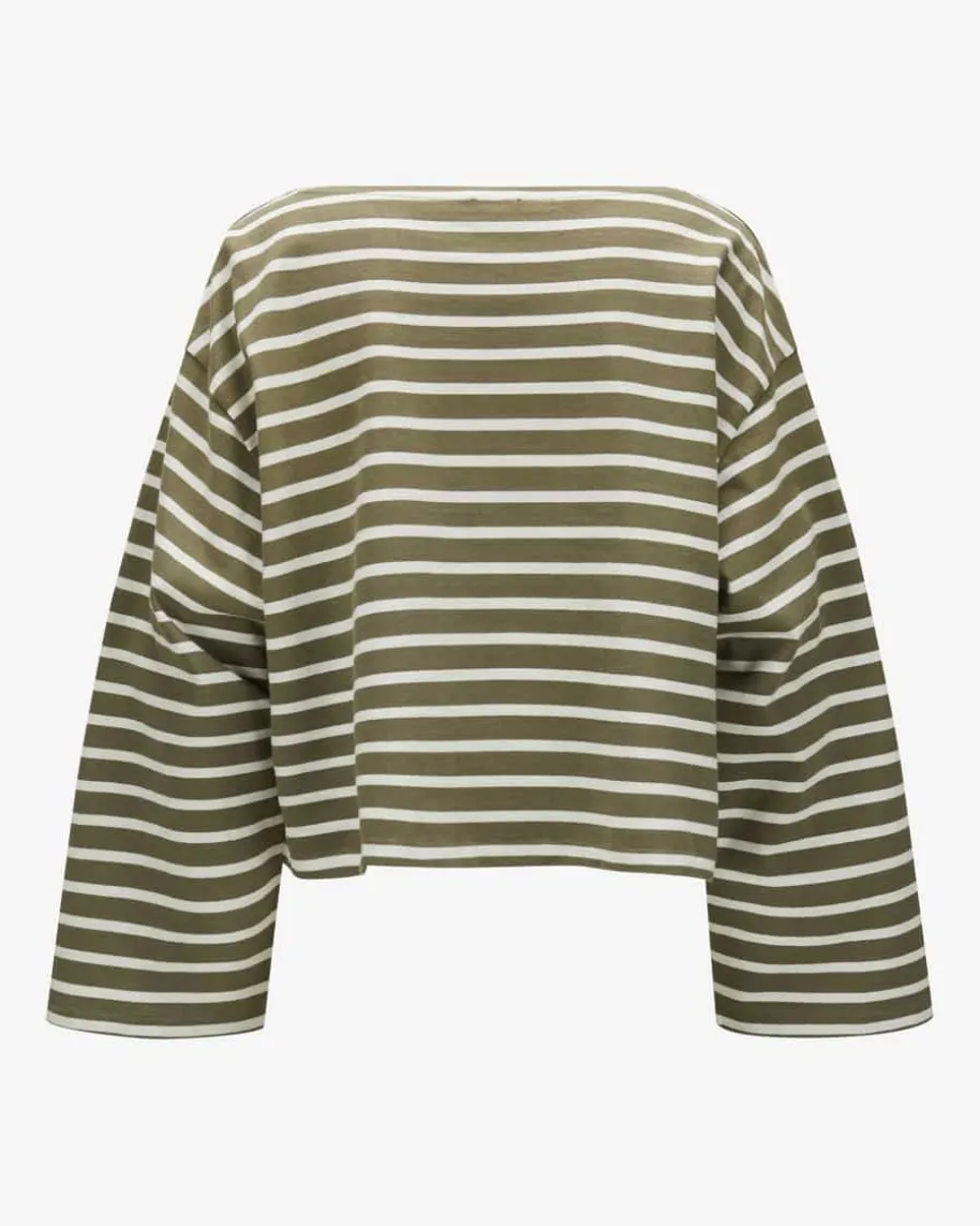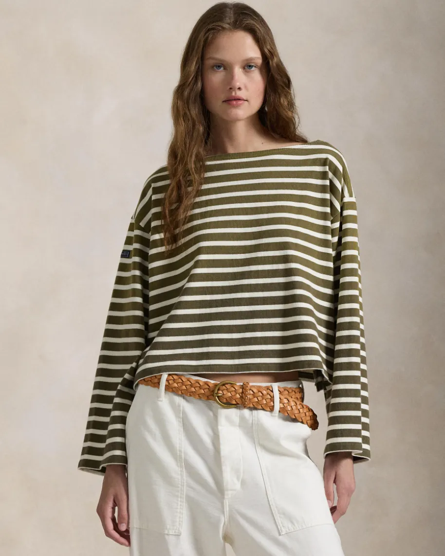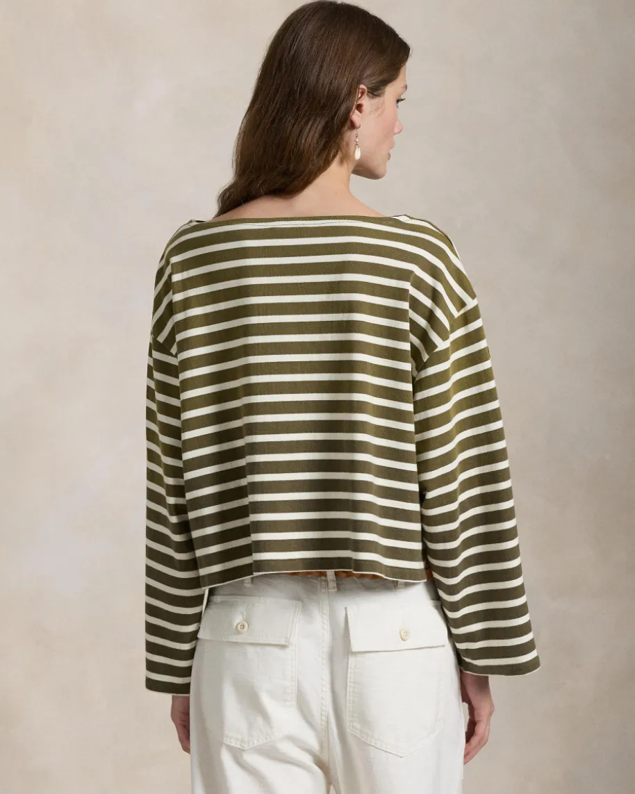 Longsleeve für Damen von Polo Ralph Lauren in Oliv und Off-White. Das Modell ausreiner Baumwolle überzeugt durch die weite Passform undklassischem Streifen-Dessin. Ein modischer Begleiter für vielseitige Casual-Looks.
