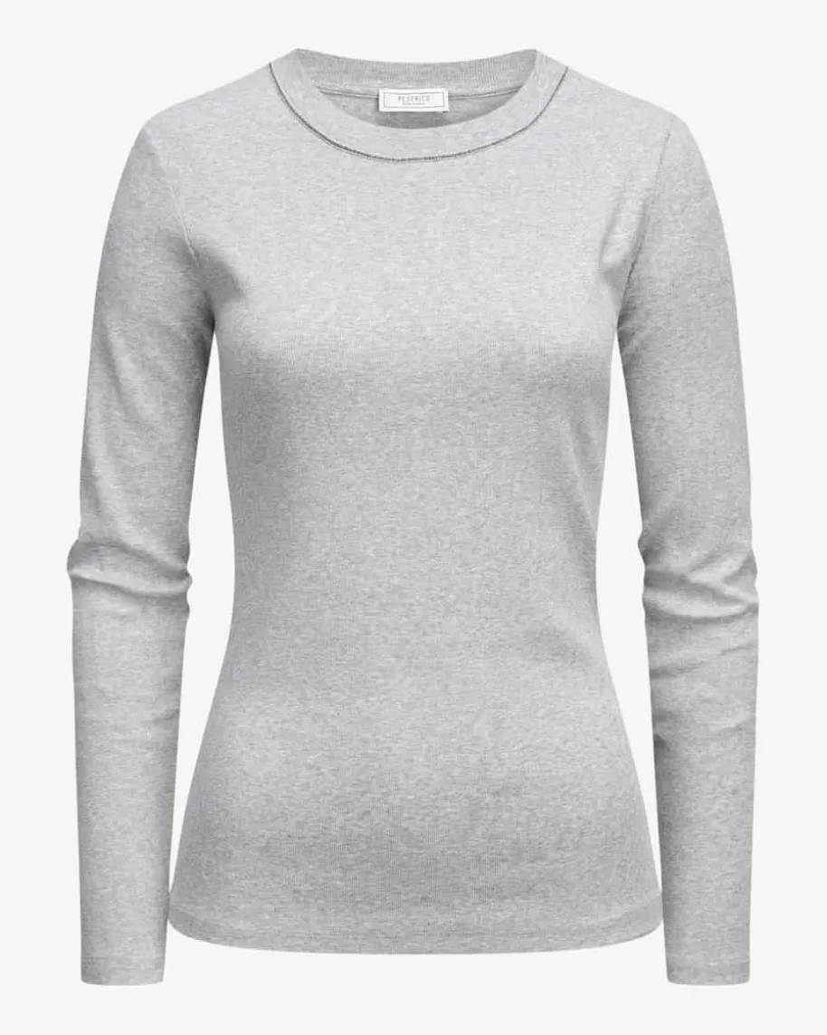 Longsleeve für Damen von Peserico in Hellgrau. Dank der dezenten Schmuckstein-Applikation am Rundhals-Ausschnitt avanciert das Modell zum modischen Blickfang,während die schlichte Schnittführung einen vielseitigen Alltagsbegleiterschafft.