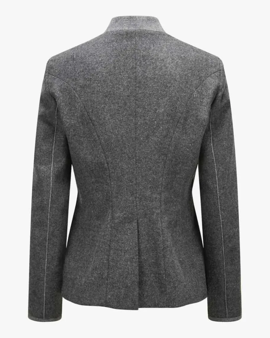 Lore Trachtenblazer für Damen von Habsburg in Anthrazit und Grau. Das Modell aushochwertigem Schurwoll-Mix präsentiert sich dank der Paspelierungen sowie demchangierenden Innenfutter in traditioneller Aufmachung, während der taillierteSchnitt das Gesamtbild feminin abrundet.