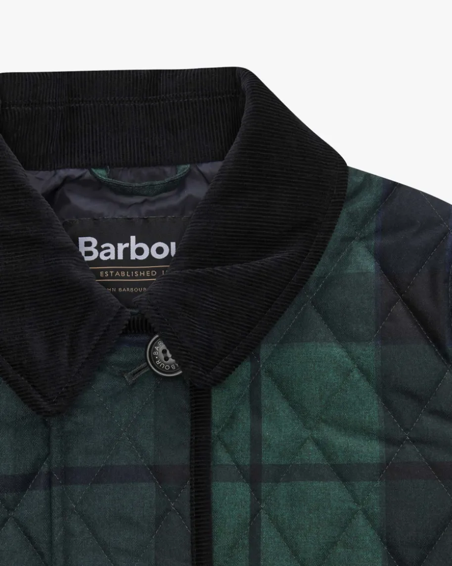 Louden Steppjacke für Damen von Barbour in Grün, Navy und Schwarz. Das 1894gegründete britische Traditionshaus ist weltberühmt für gewachste Outdoorjackenmit Heritage-Flair. Auch dieses Modell präsentiert sich dank des Steppmustersmit Cord-Besatz im charakteristischen Design, während klassische Details und dasdezente Karo-Muster die Jacke in einen sportiven sowie vielseitigenAlltagsbegleiter verwandeln.
