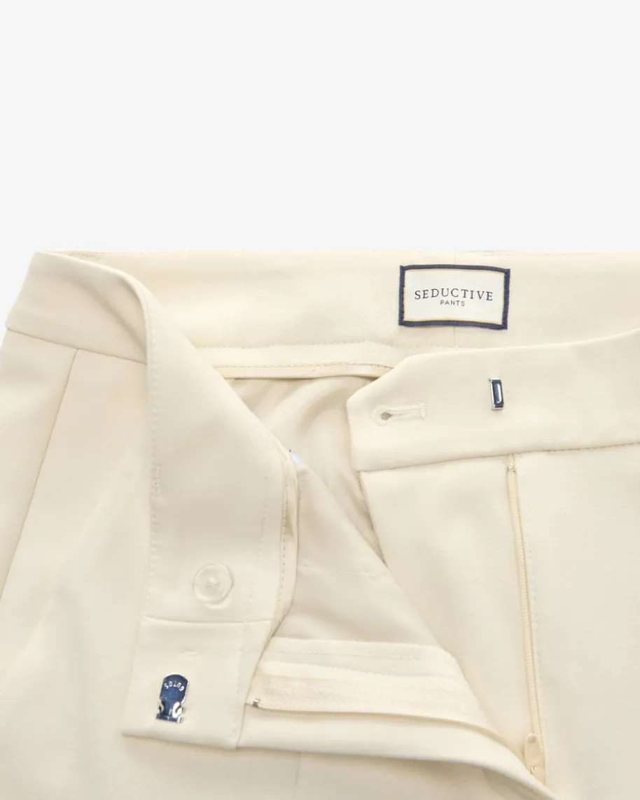 Lucasse 7/8-Hose für Damen von Seductive in Creme. Das weit geschnittene Modellpräsentiert sich dank der modernen Passform in femininer Aufmachung, währendklassische Details zusammen mit der fließenden Material-Qualität einen edlenBegleiter schaffen.