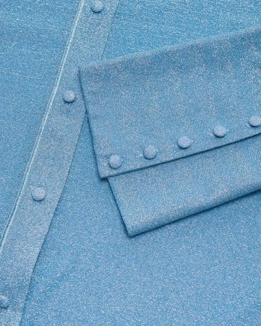 Lumiere Hemdbluse für Damen von Oséree in Türkis. Dank der extravagantenGlitzerfasern-Aufmachung in changierender Optik präsentiert sich das semi-transparente Modell mit modisch-femininem Flair, während die weite Passform mitklassischen Hemd-Details eine stilvolle Silhouette mit 70er-Jahre Touch kreiert.Das Modell kann mit der passenden Hose getragen werden.